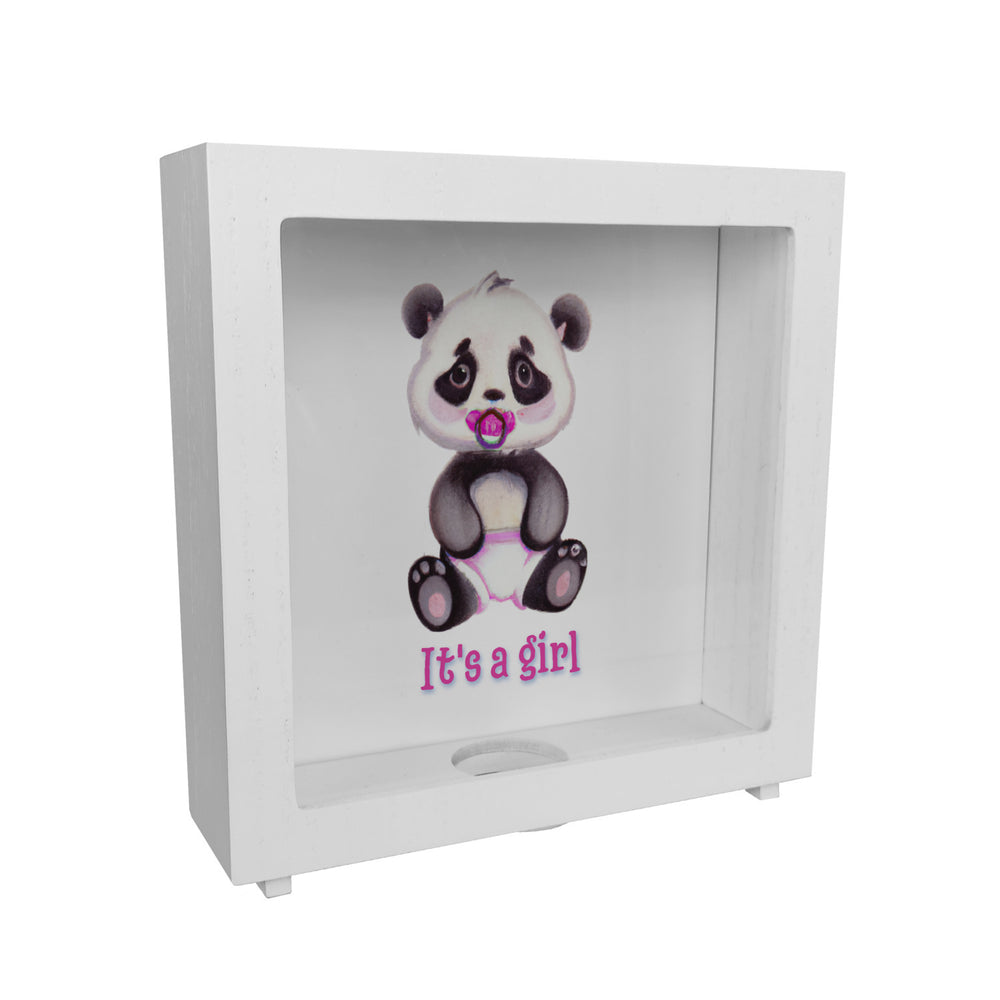 - 1x It's a girl Baby Panda Spardose in rosa in der gewählten Ausführung