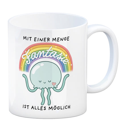 Jelly & Friends Qualle Kaffeebecher mit Spruch Mit Fantasie ist alles möglich