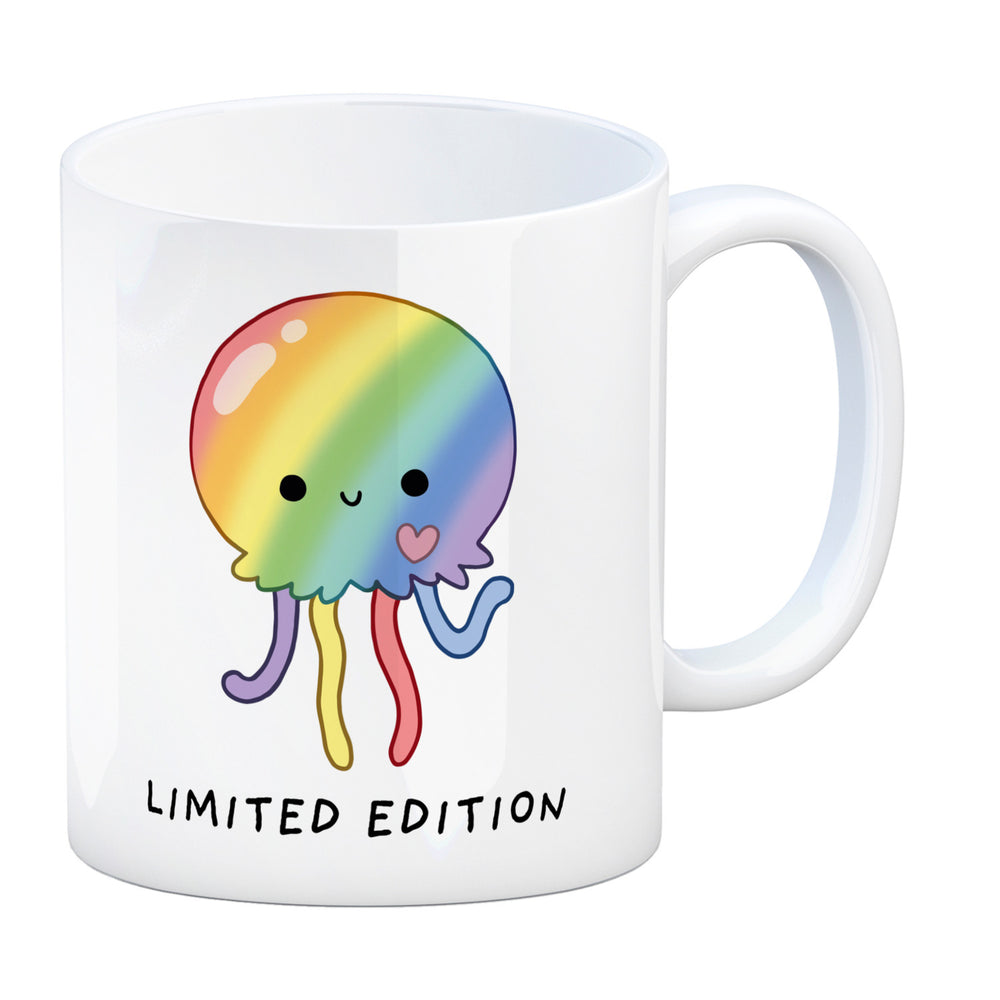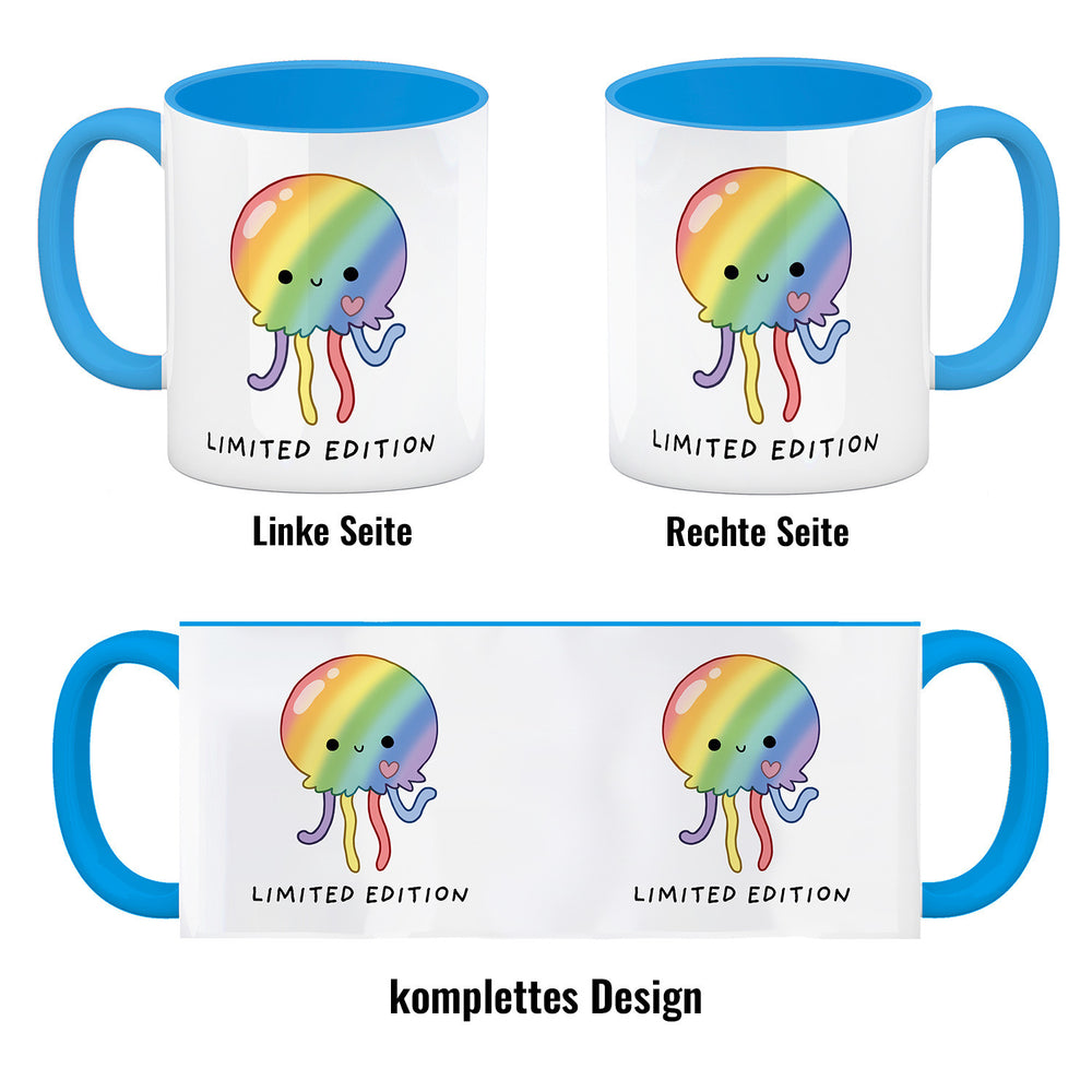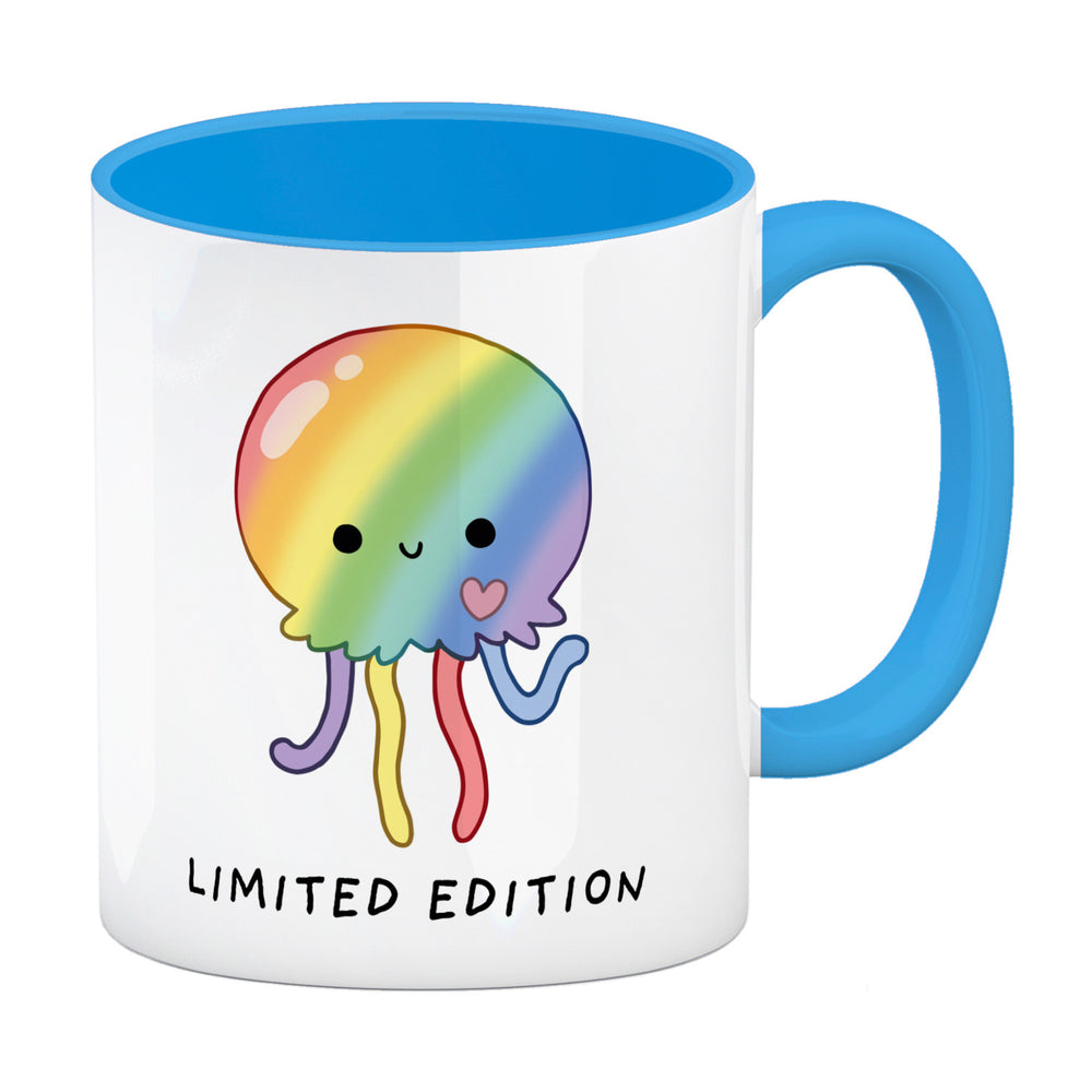 - 1x Jelly & Friends Regenbogen-Qualle Kaffeebecher mit Spruch Limited Edition in der gewählten Ausführung