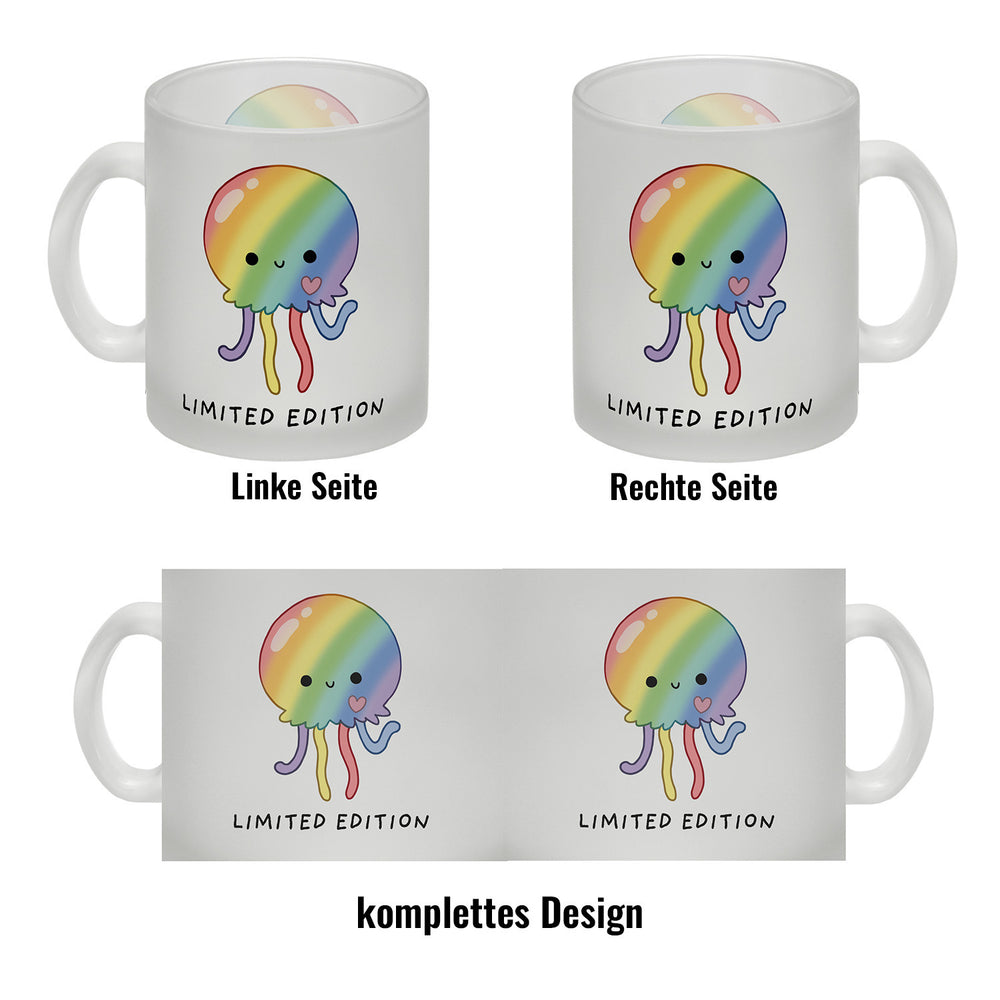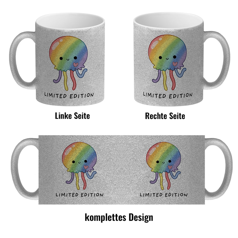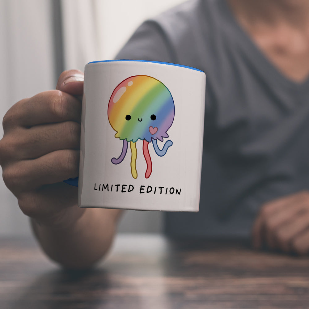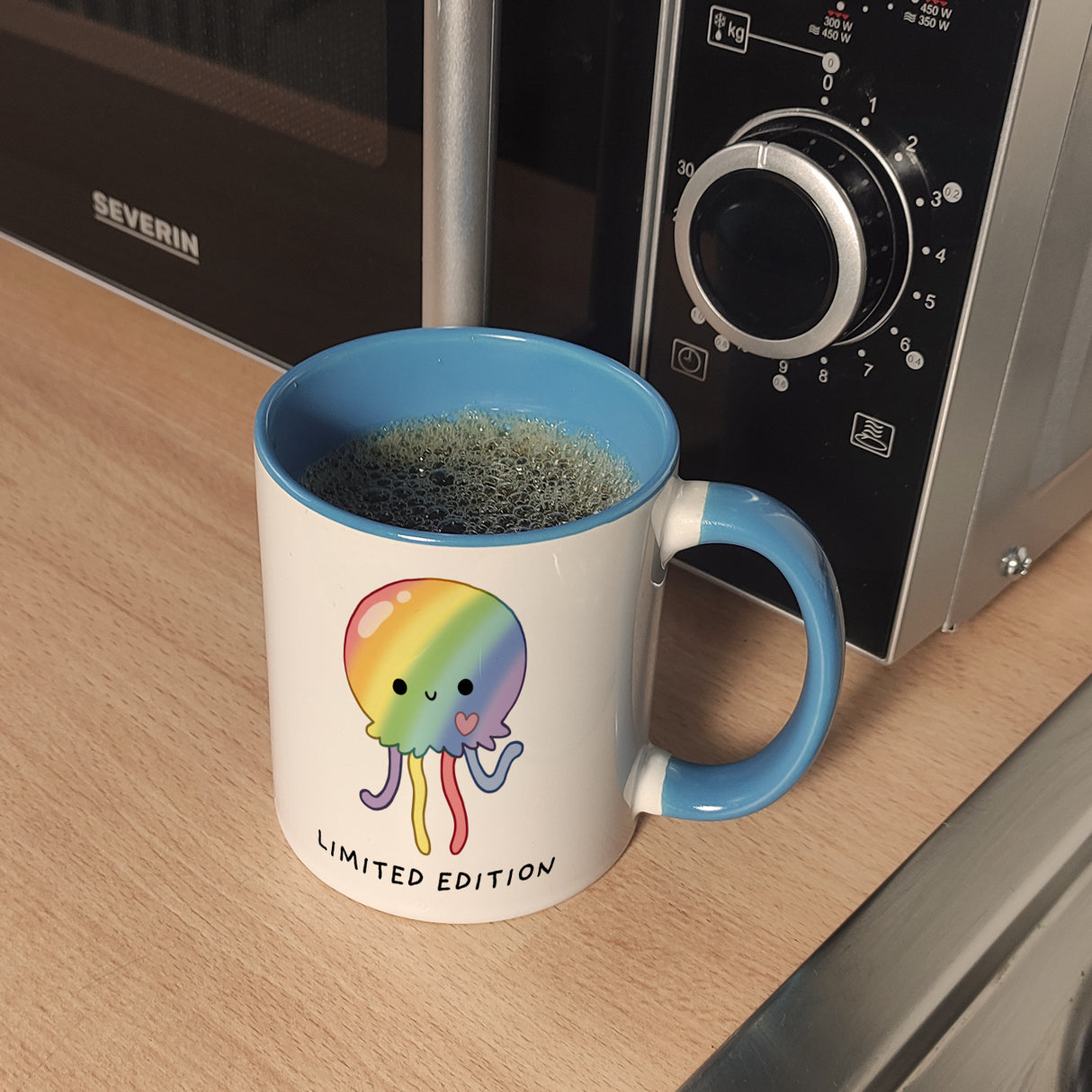 - 1x Jelly & Friends Regenbogen-Qualle Kaffeebecher mit Spruch Limited Edition in der gewählten Ausführung