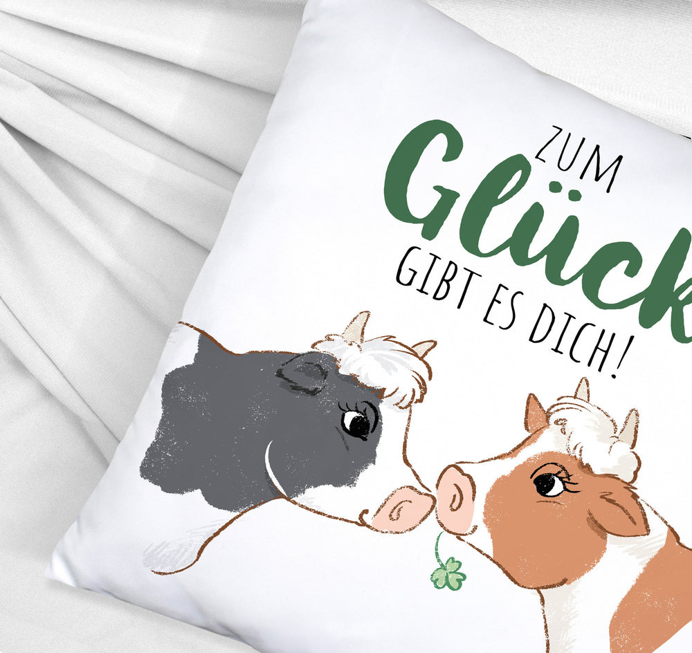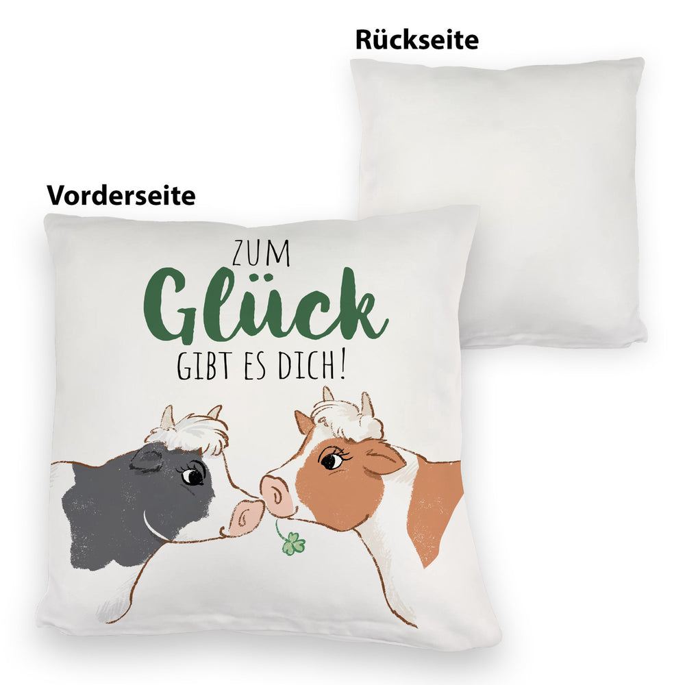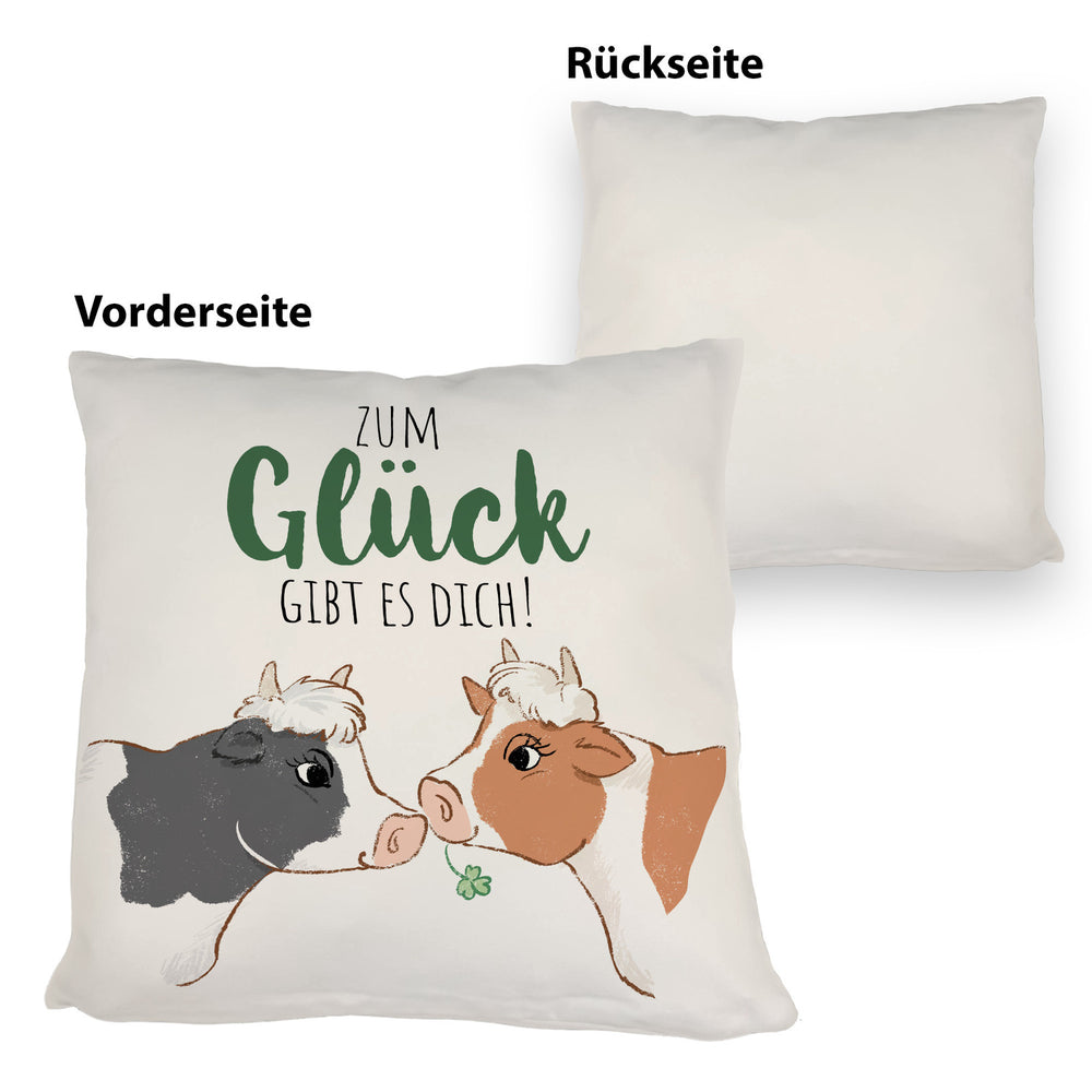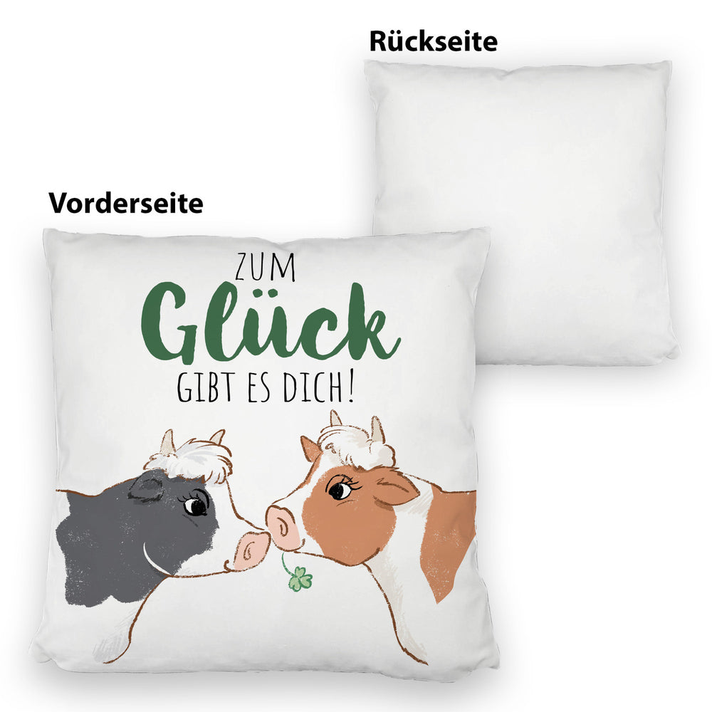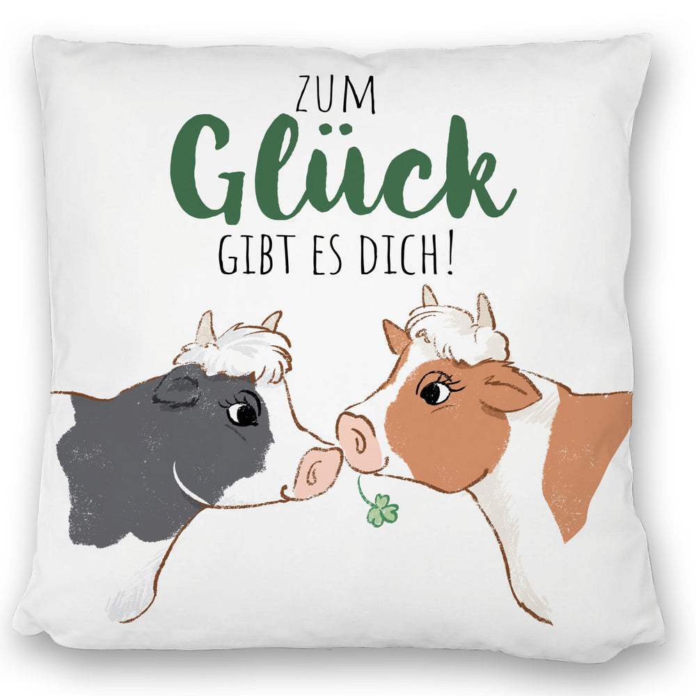 Kuh-Paar Kissen mit Spruch Zum Glück gibt es dich