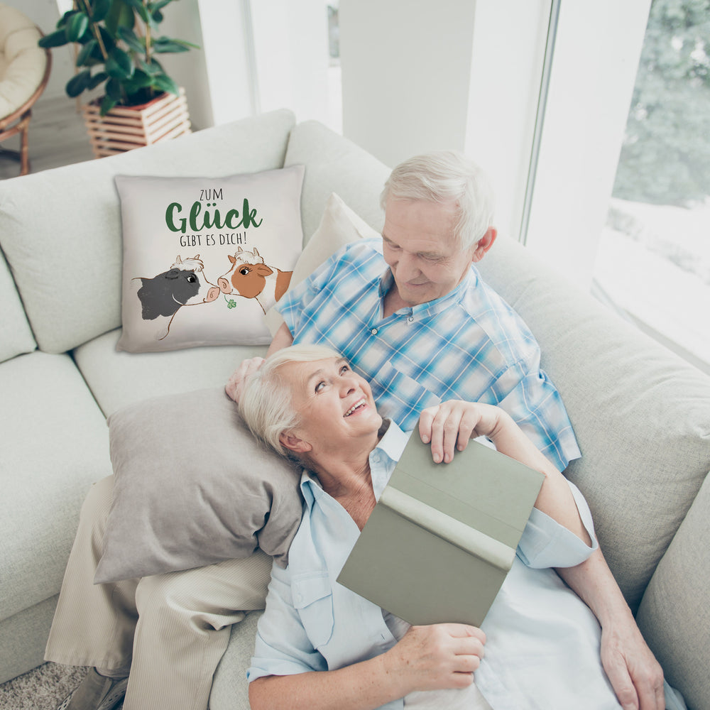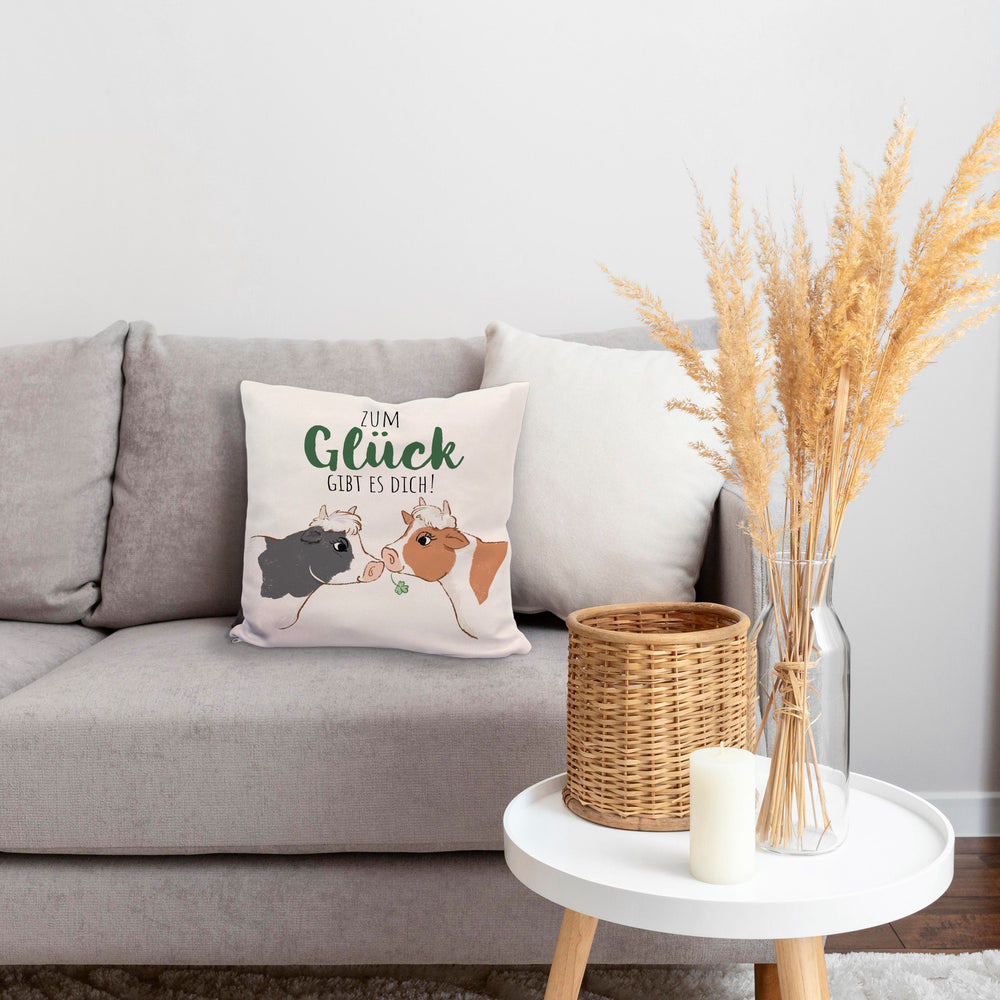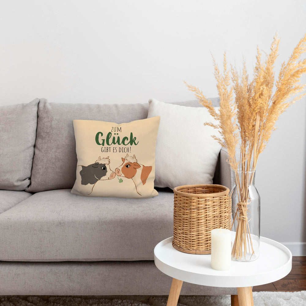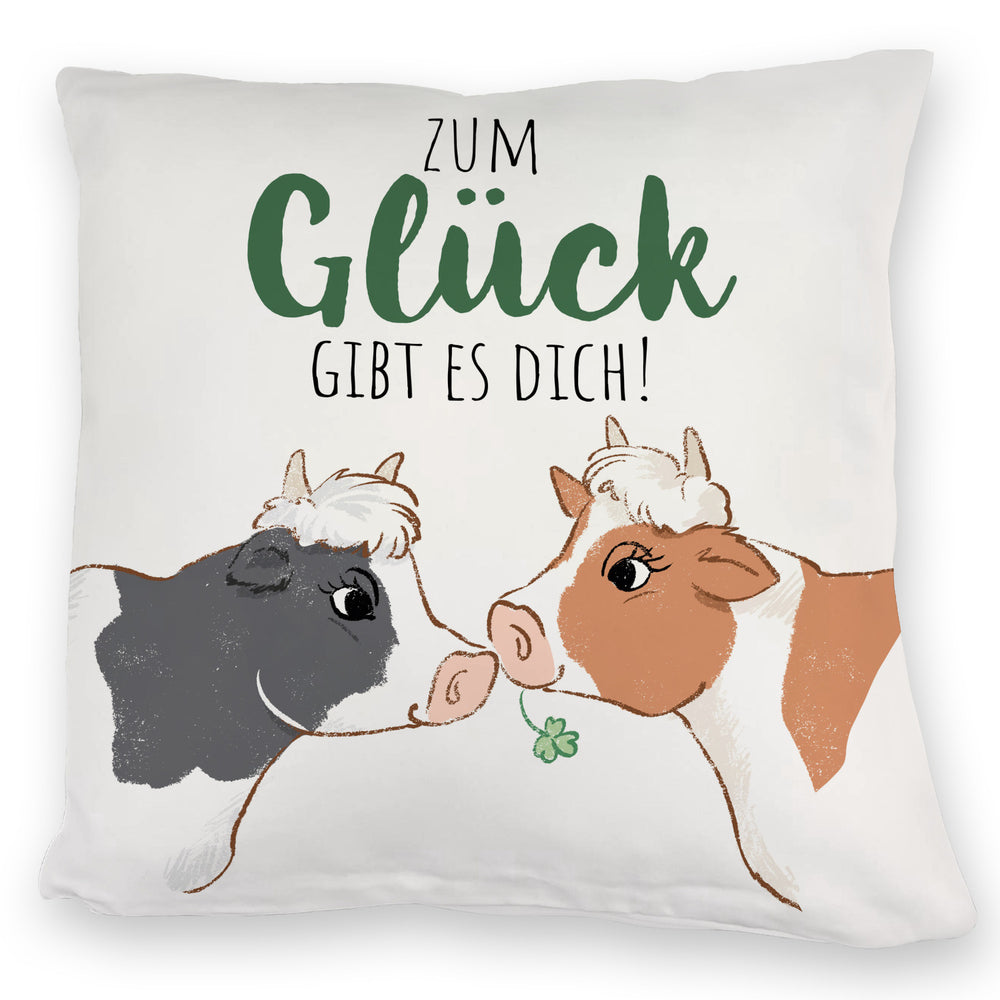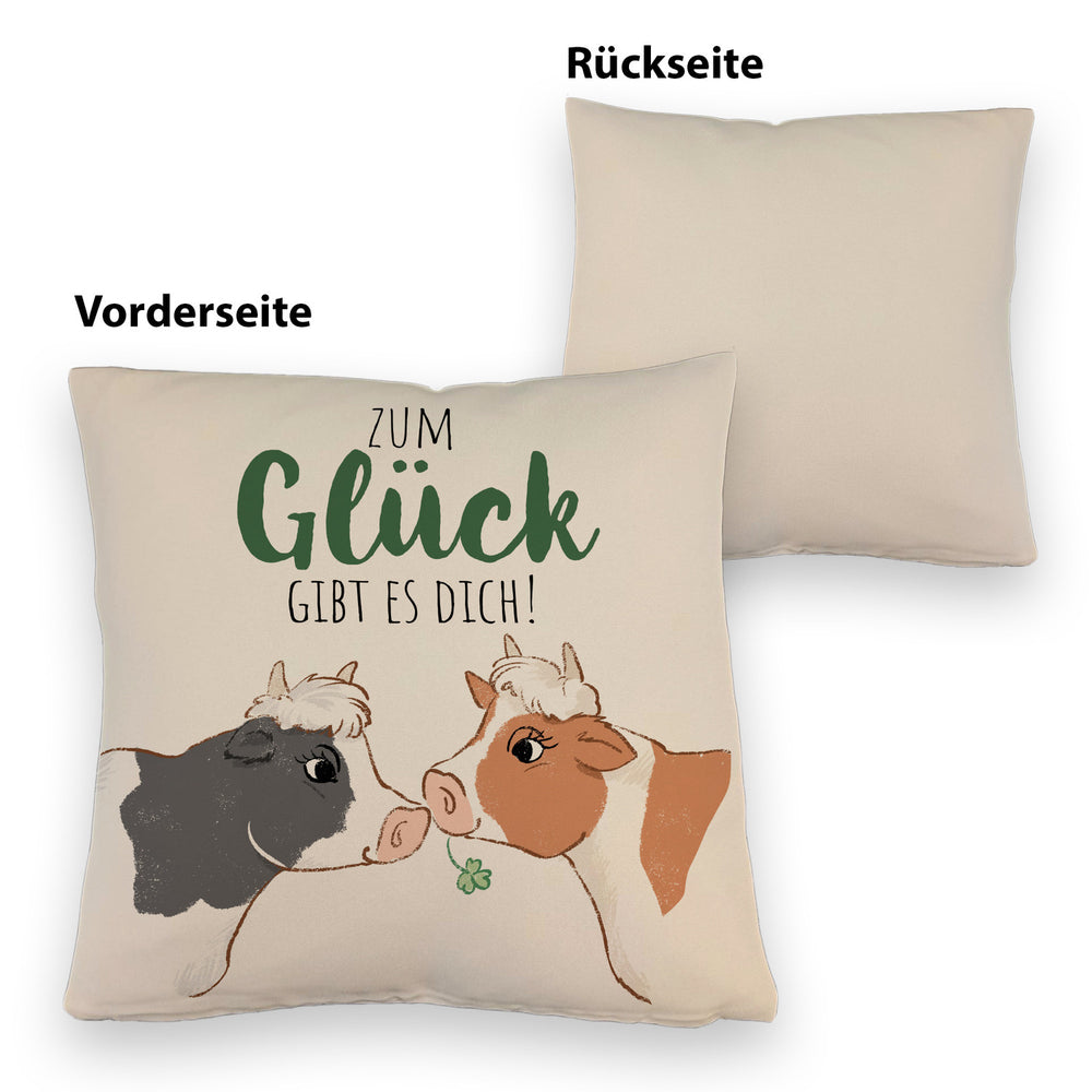 Kuh-Paar Kissen mit Spruch Zum Glück gibt es dich