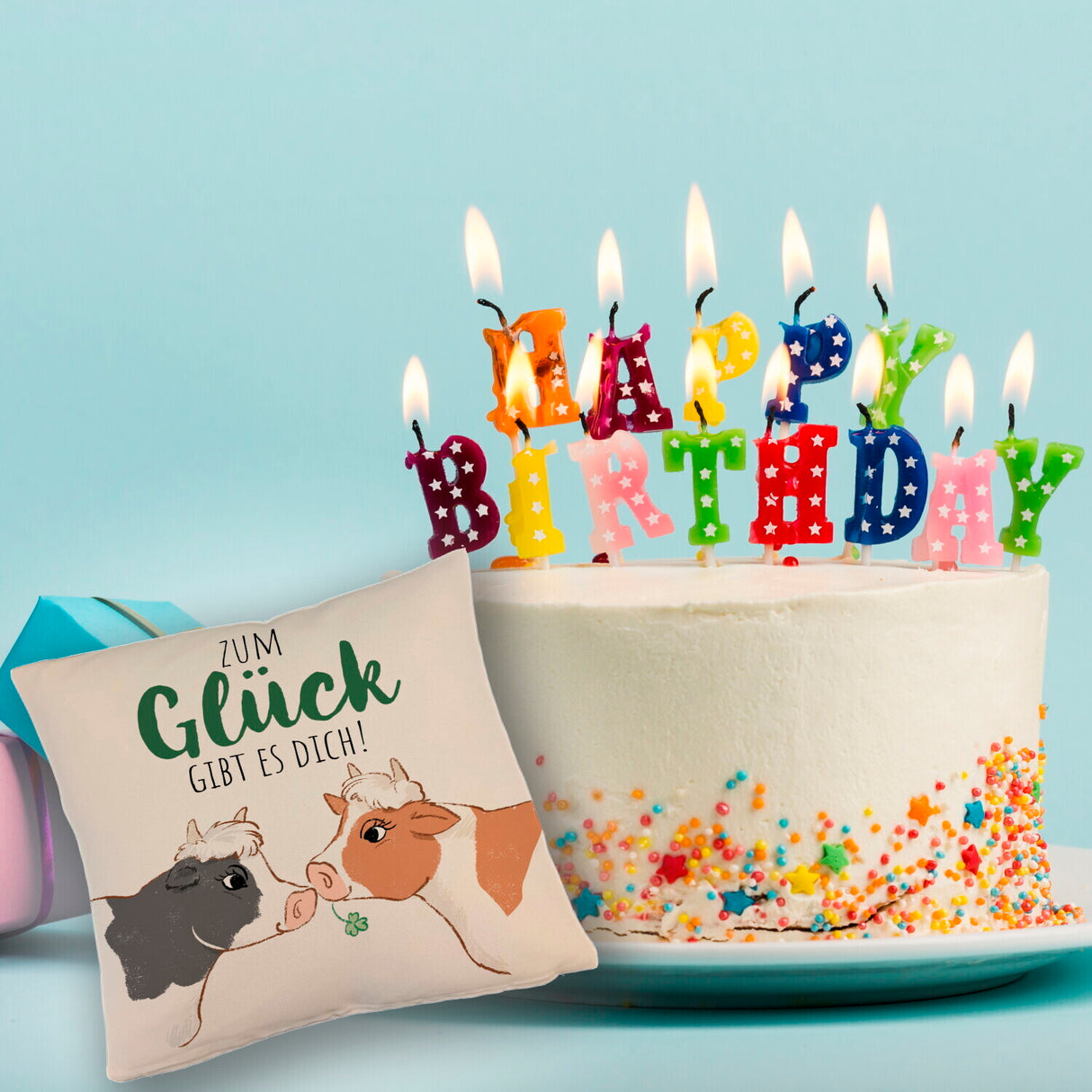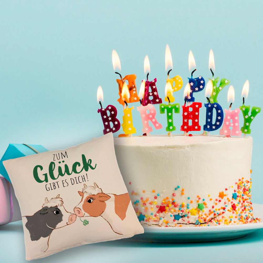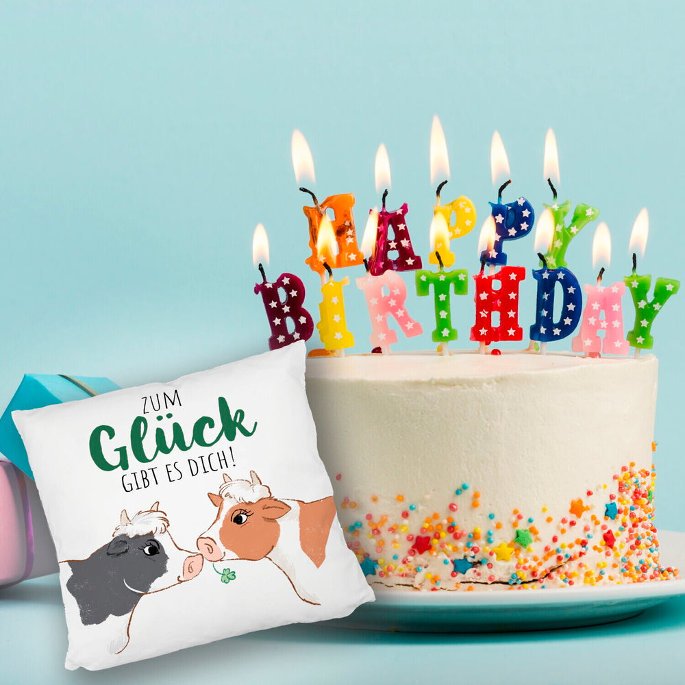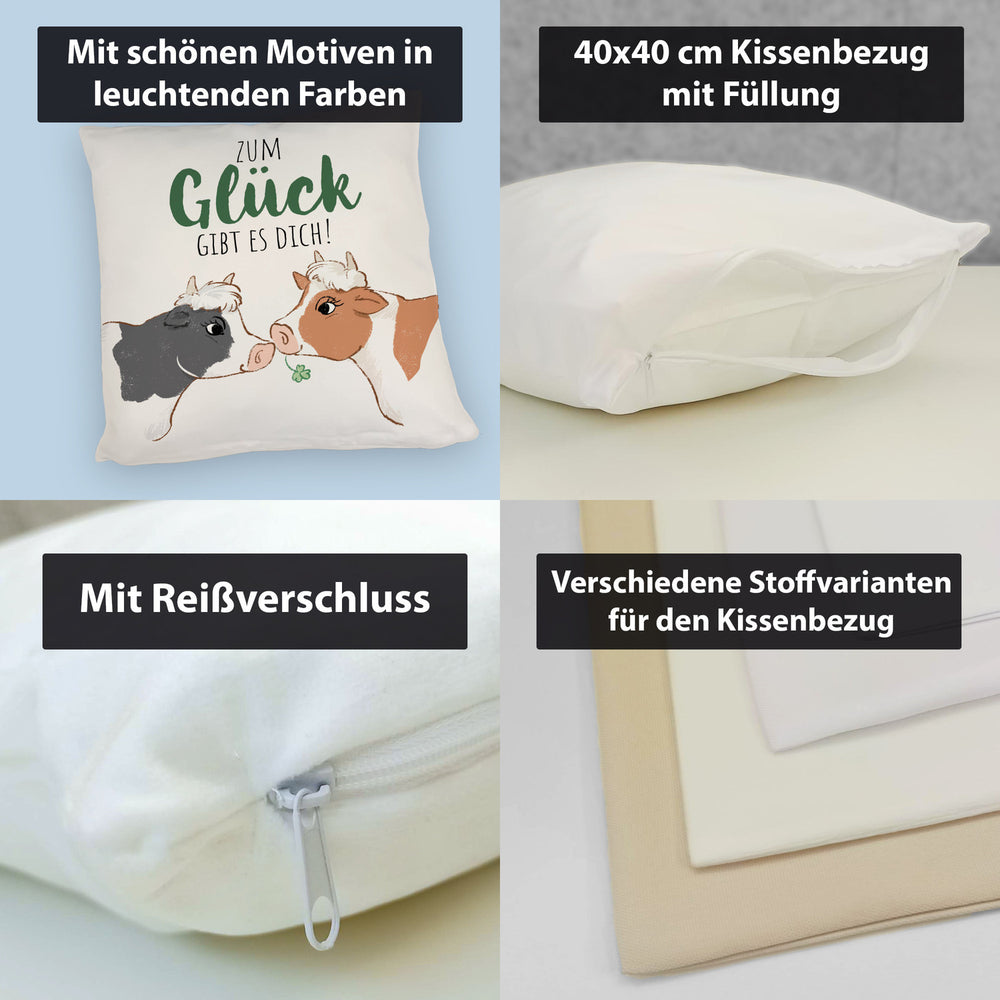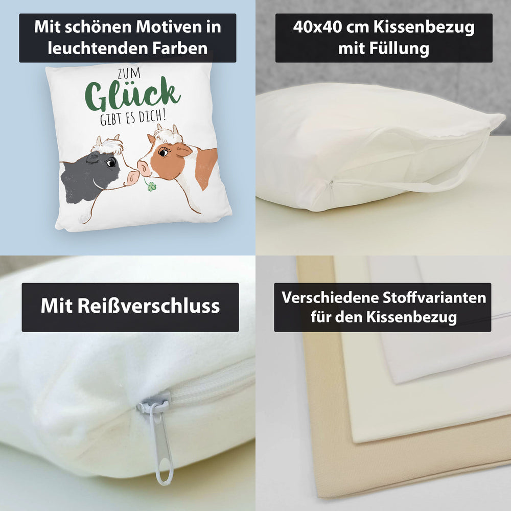 Kuh-Paar Kissen mit Spruch Zum Glück gibt es dich