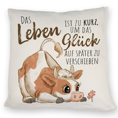 Kuh Kissen mit Spruch Das Leben ist zu kurz um das Glück zu verschieben
