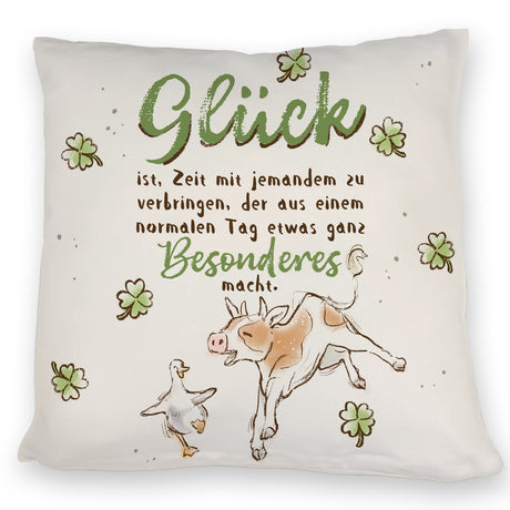 Kuh und Gans Kissen mit Spruch Glück ist besondere Zeit teilen