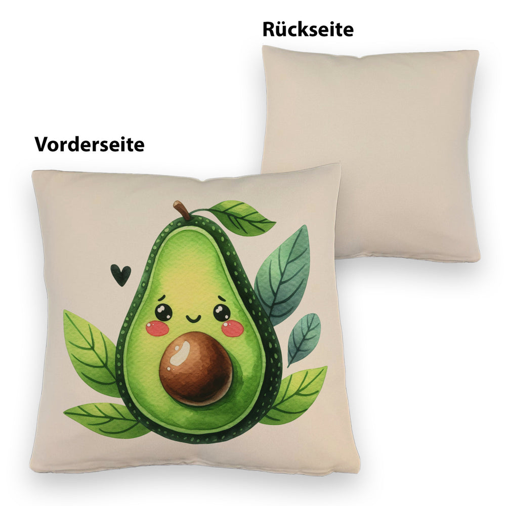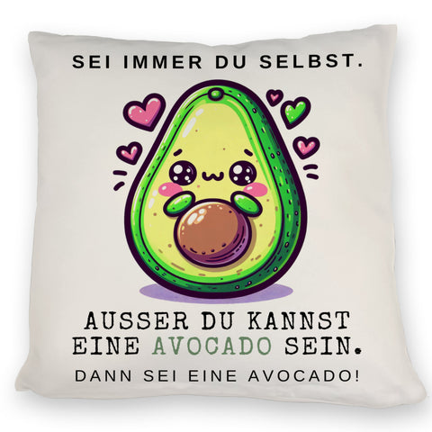 Avocado im Kawaii-Stil Kissen mit Spruch Sei du selbst oder Avocado