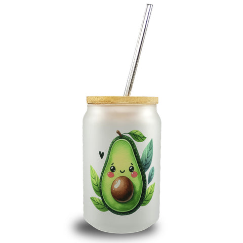 Lächelnde Avocado Trinkglas mit Bambusdeckel