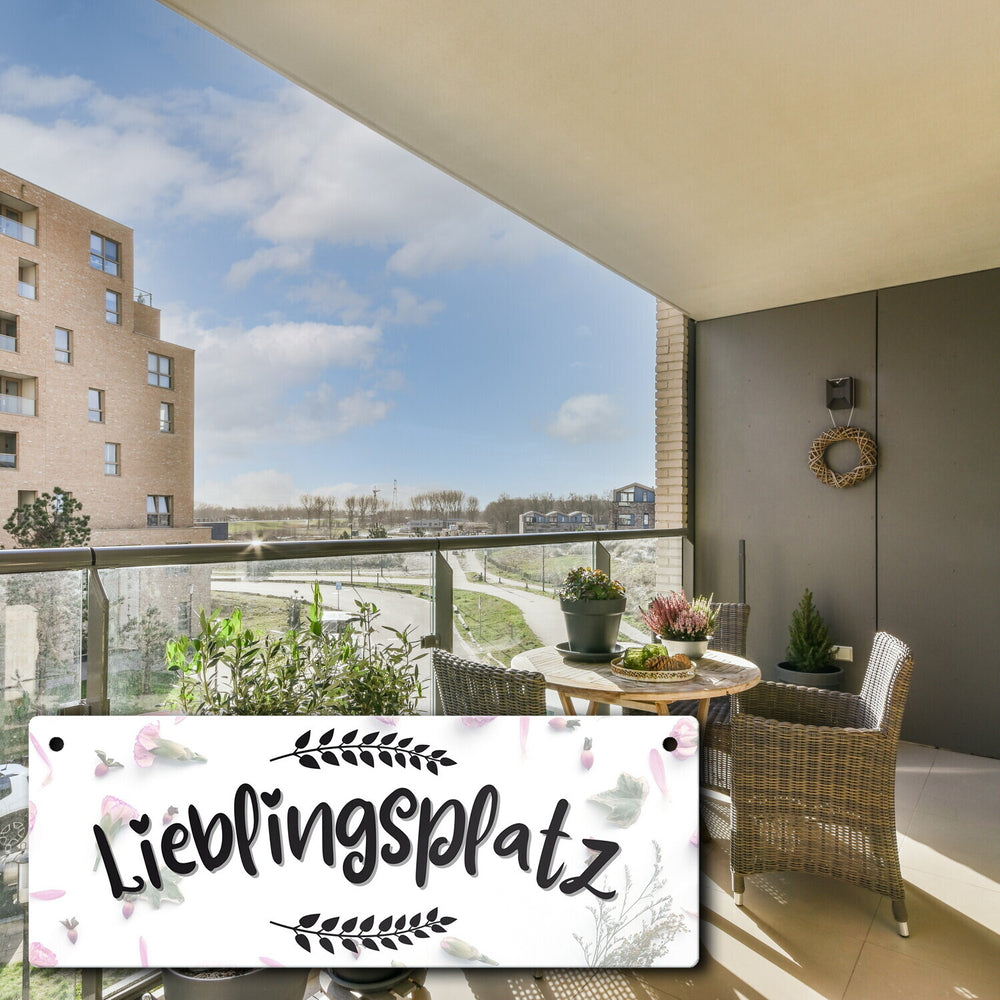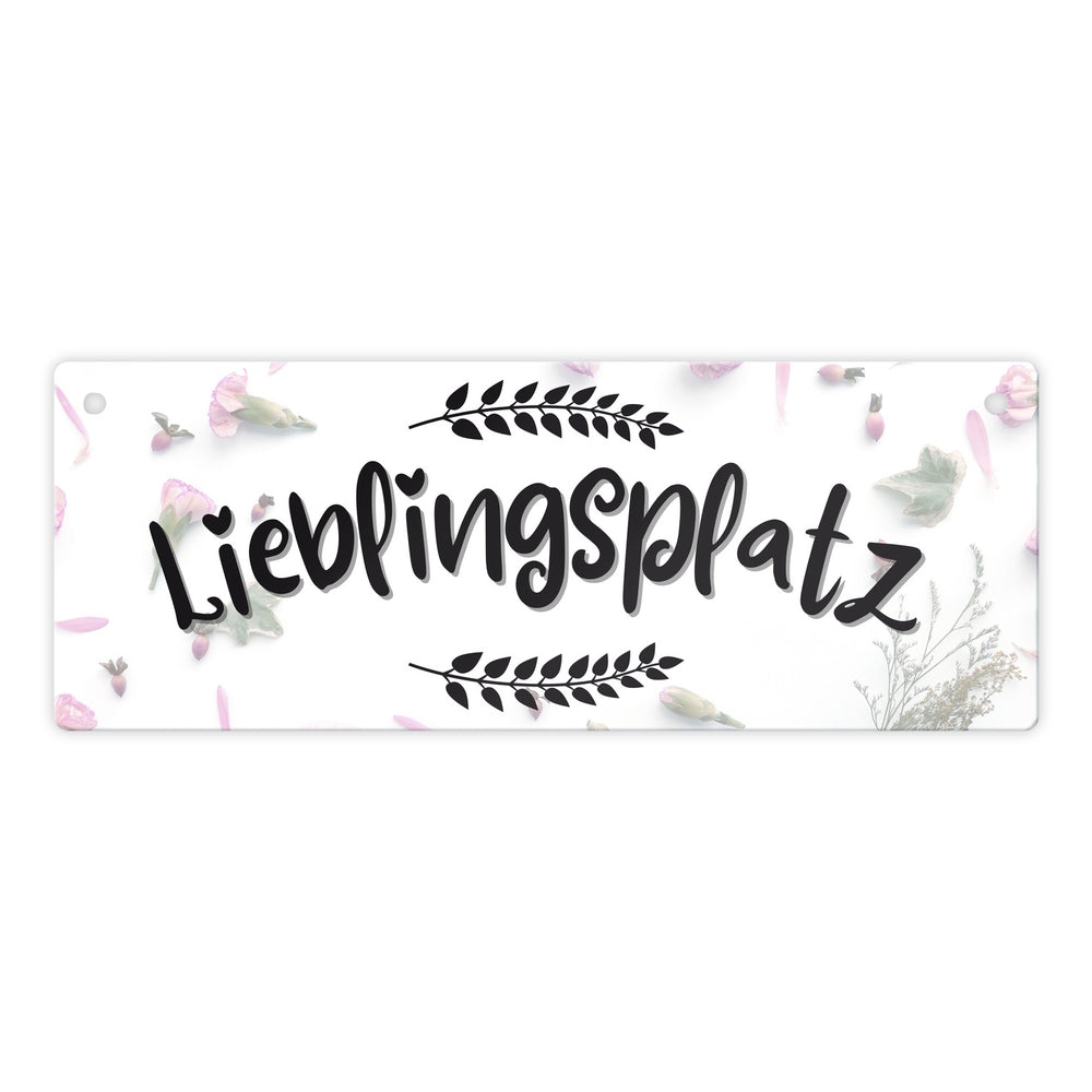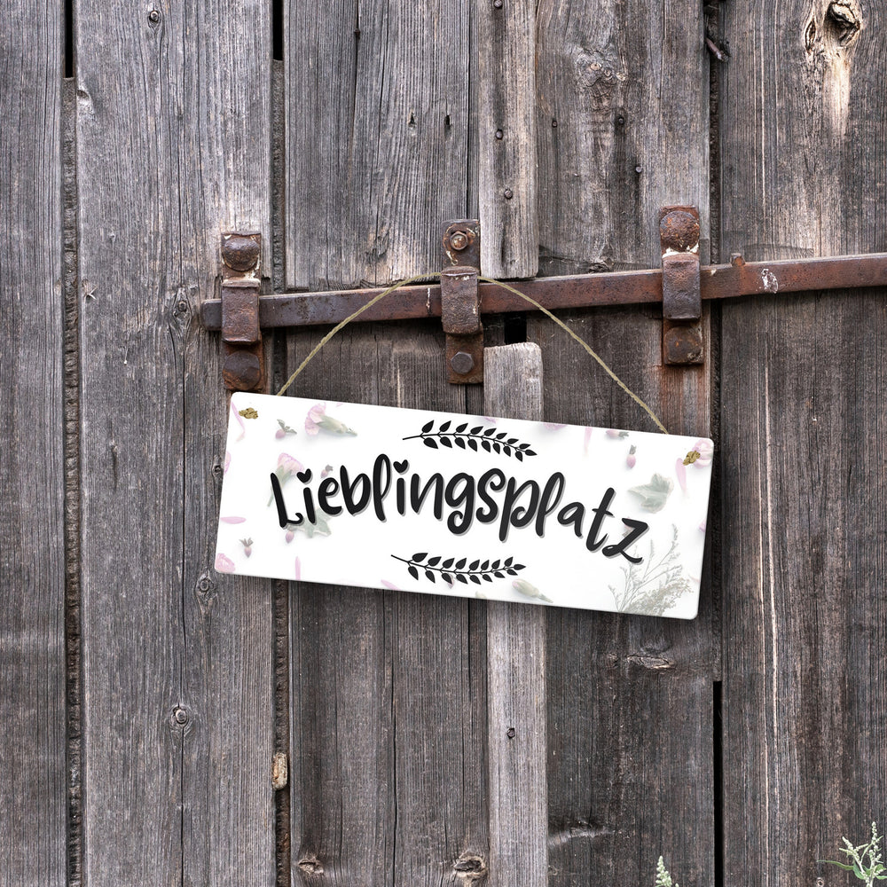 - Unser charmantes Metallschild ist eine echte Augenweide! Es präsentiert stolz das Wort "Lieblingsplatz"umrahmt von wunderschönen Blumenkränzen. Der Hintergrund ist ein Meer aus Blüten und Blättern auf weißem Grund. Dieses Schild ist perfekt, um deinem Lieblingsort das gewisse Etwas zu verleihen und ihn offiziell zu deinem Rückzugsort zu machen.