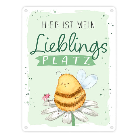 Pummel Biene Metallschild in 15x20 cm mit Spruch Hier ist mein Lieblingsplatz
