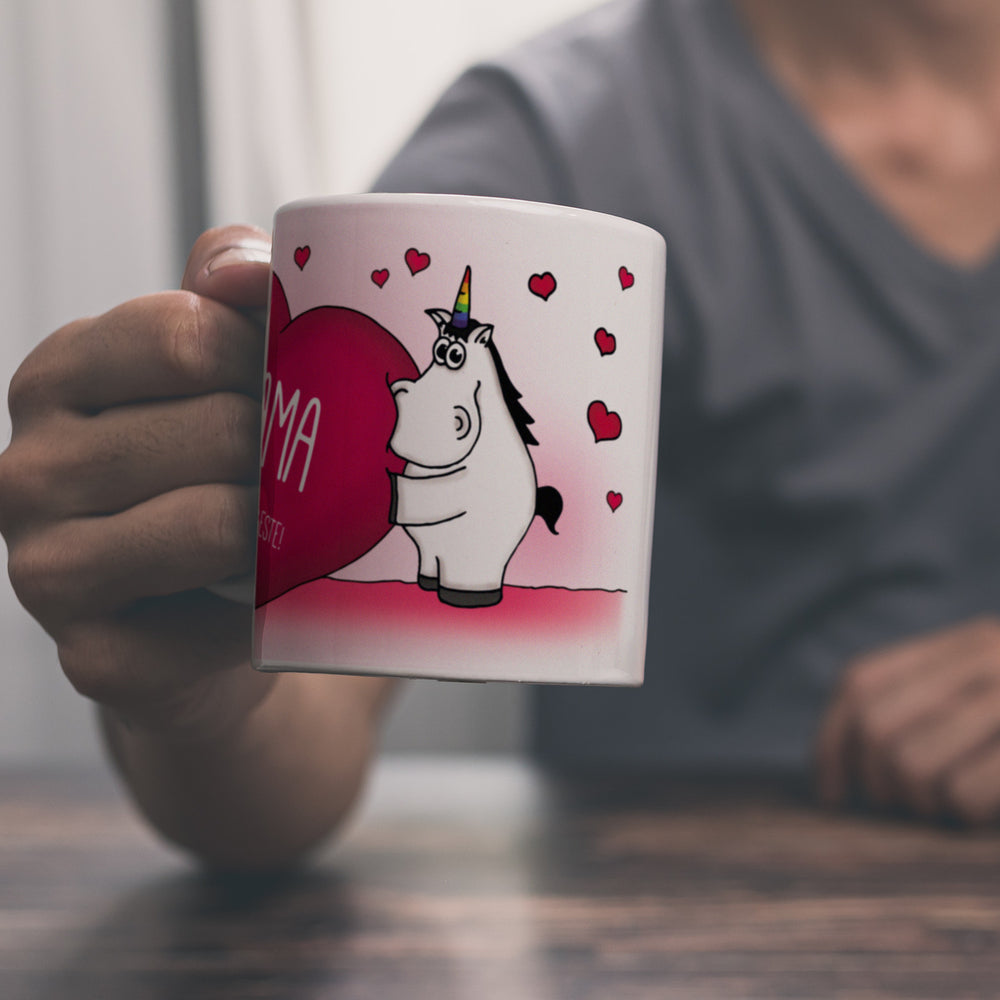 - Lieferumfang: 1x Einhorn Kaffeebecher mit Herz Motiv und Spruch: Mama ... ist die Beste!
