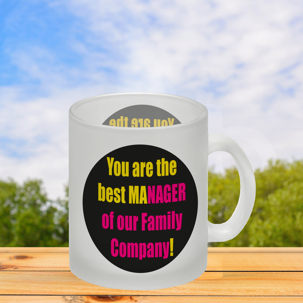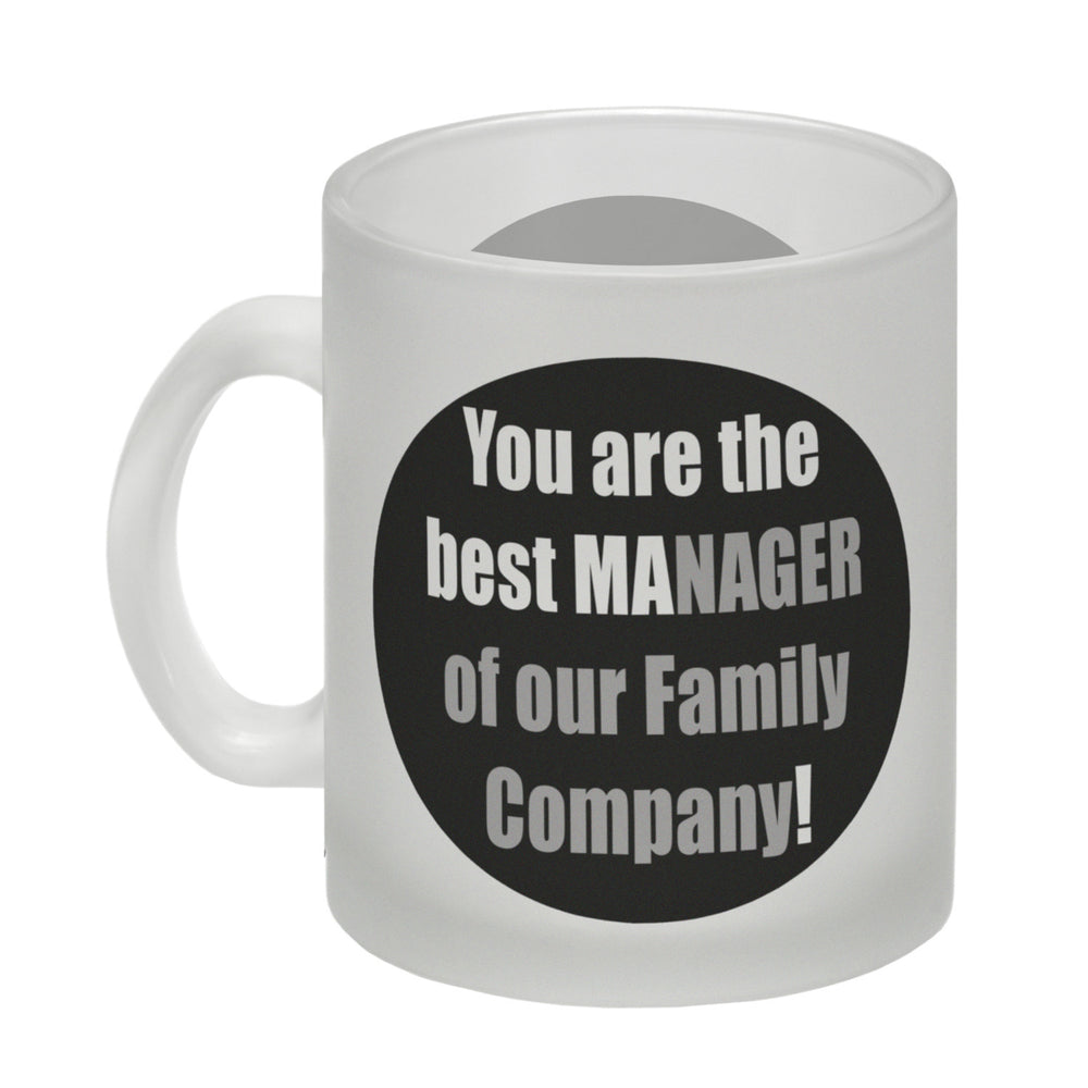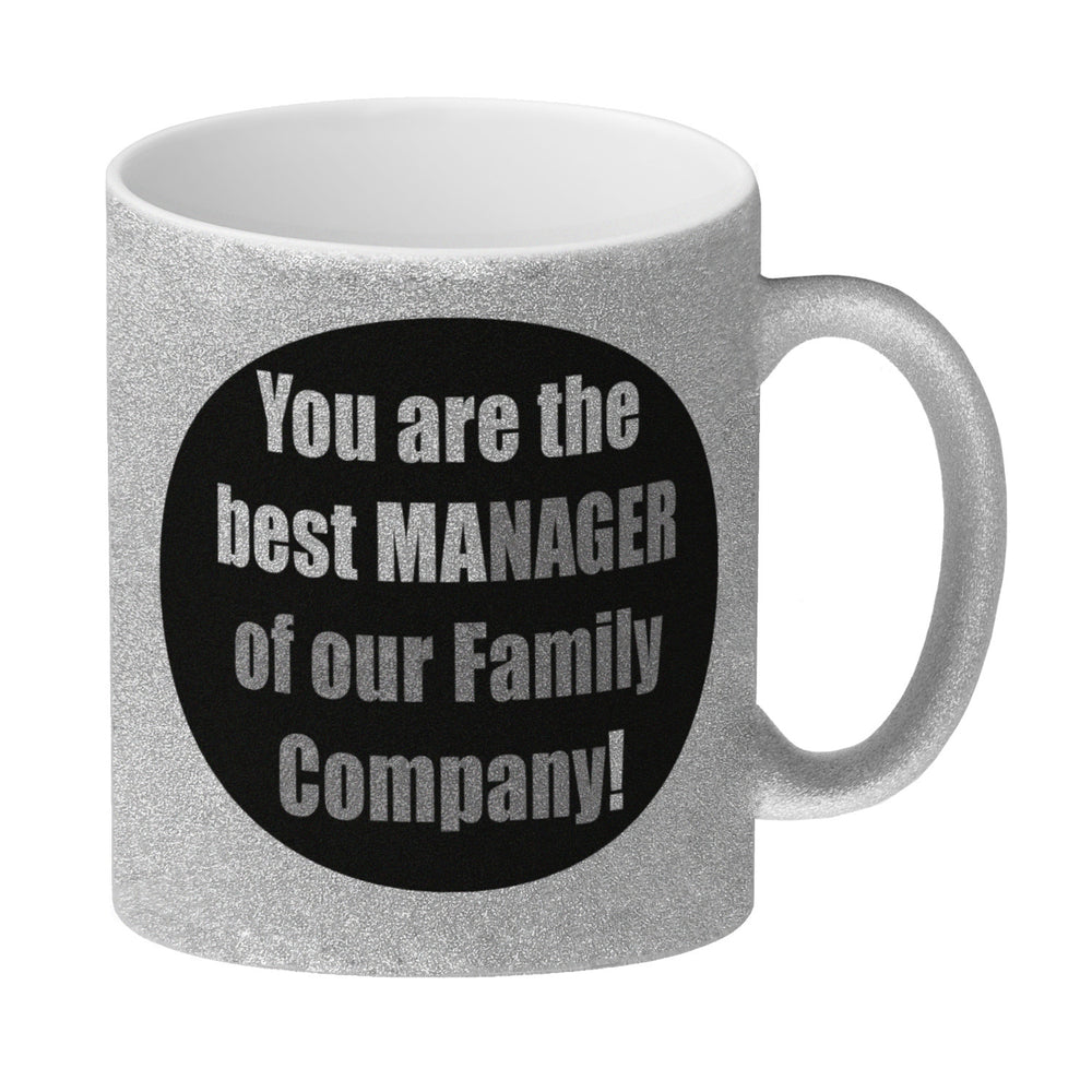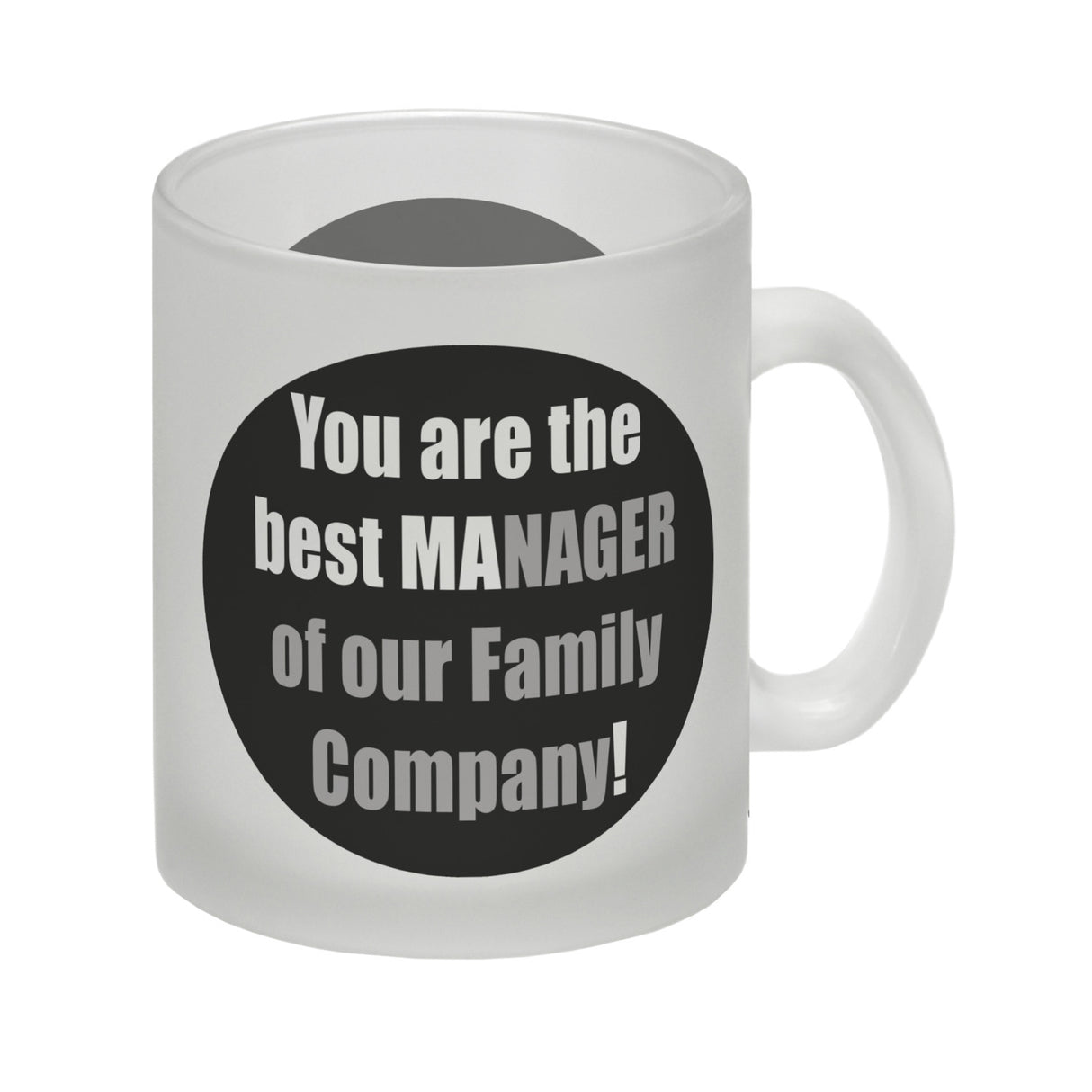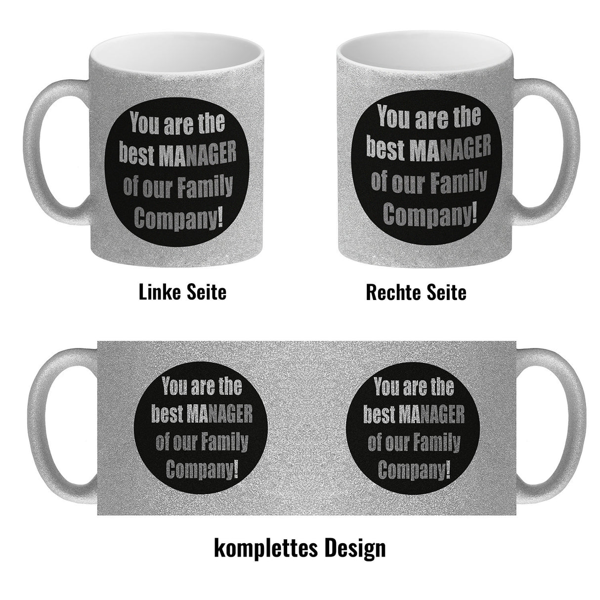 - 1x Manager of our Family Kaffeebecher mit Spruch für Mama zum Muttertag in der gewählten Ausführung