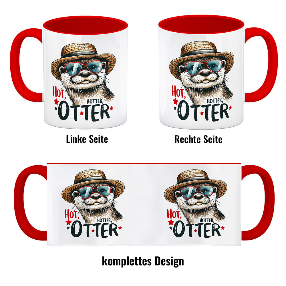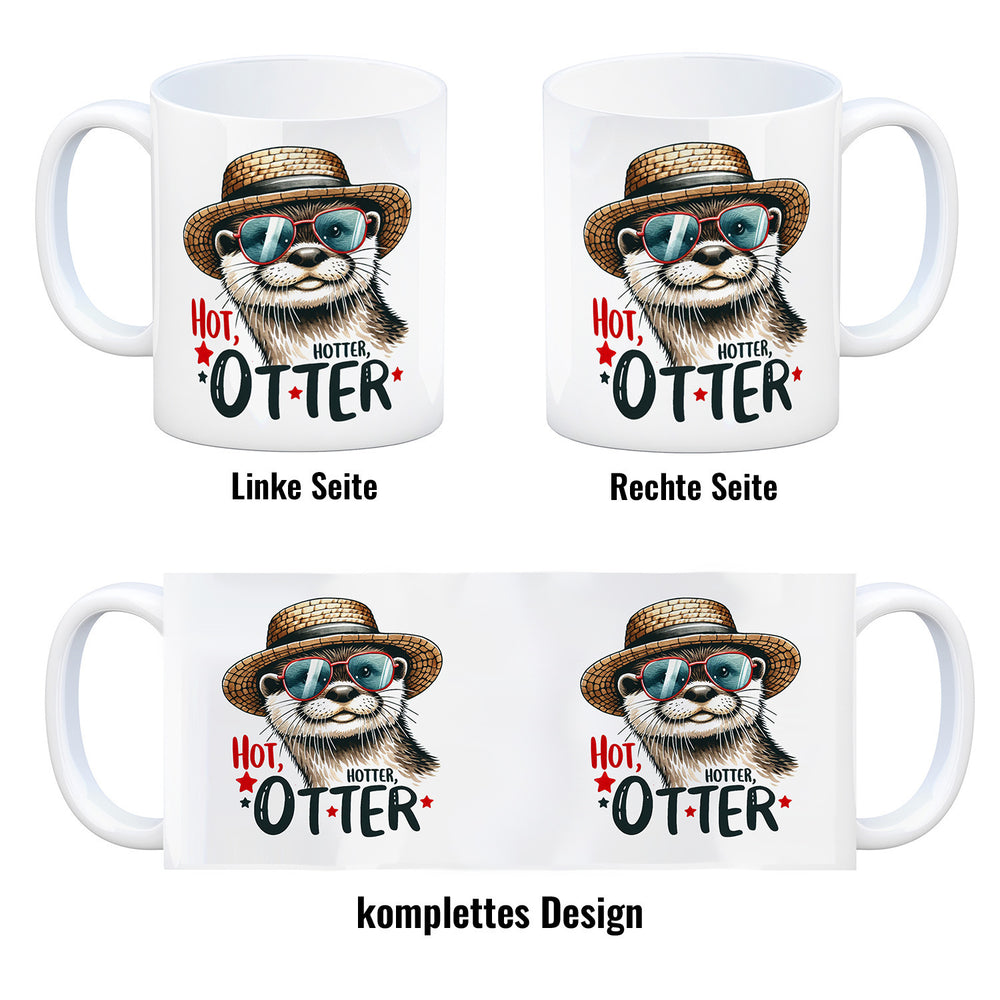 - 1x Otter mit Sonnenbrille und Strohhut Kaffeebecher mit Spruch Hot Hotter Otter in der gewählten Ausführung