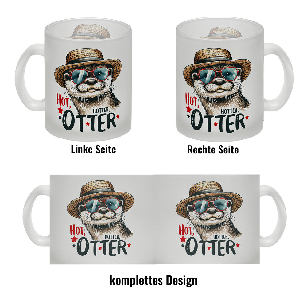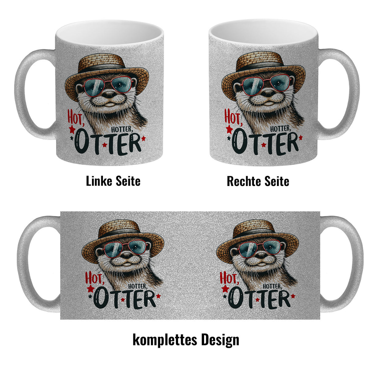 Otter mit Sonnenbrille und Strohhut Kaffeebecher mit Spruch Hot Hotter Otter