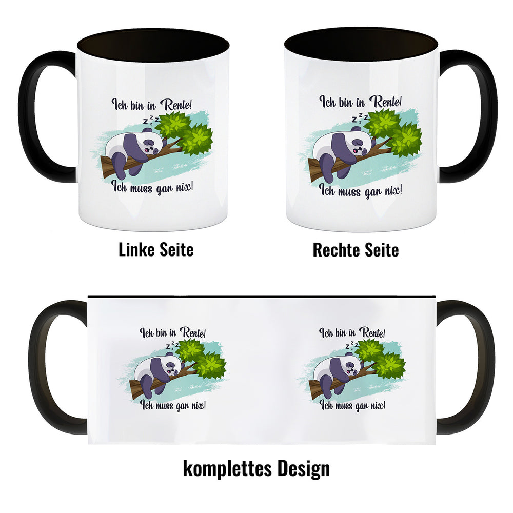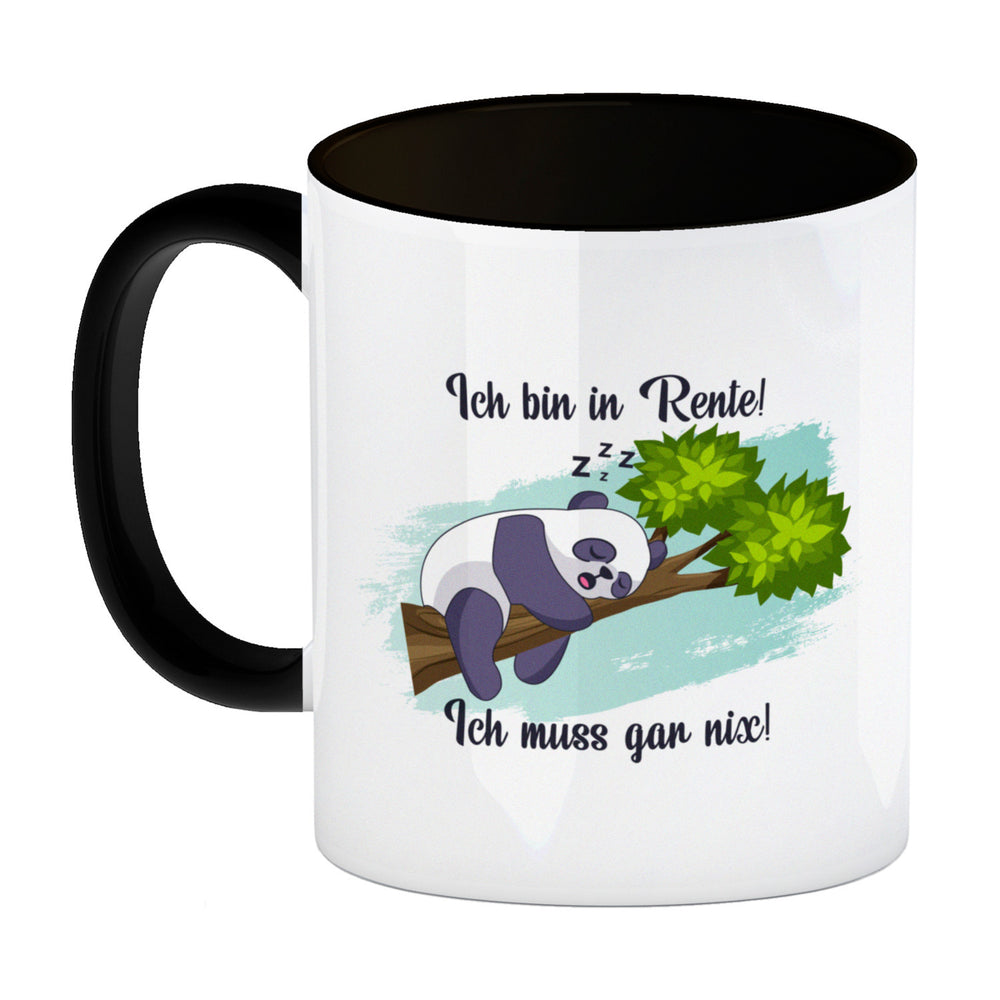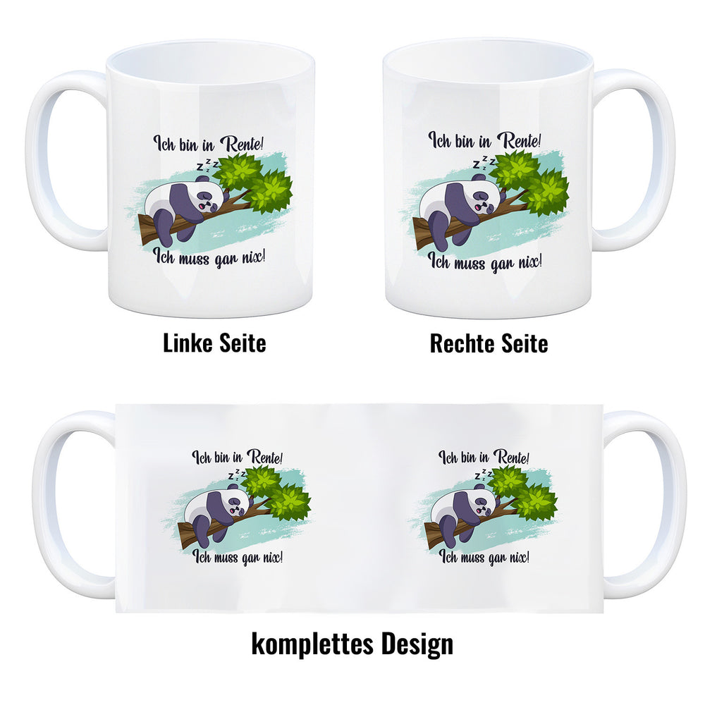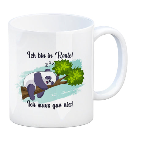 - 1x Panda Kaffeebecher mit Spruch Ich bin in Rente Ich muss gar nix in der gewählten Ausführung
