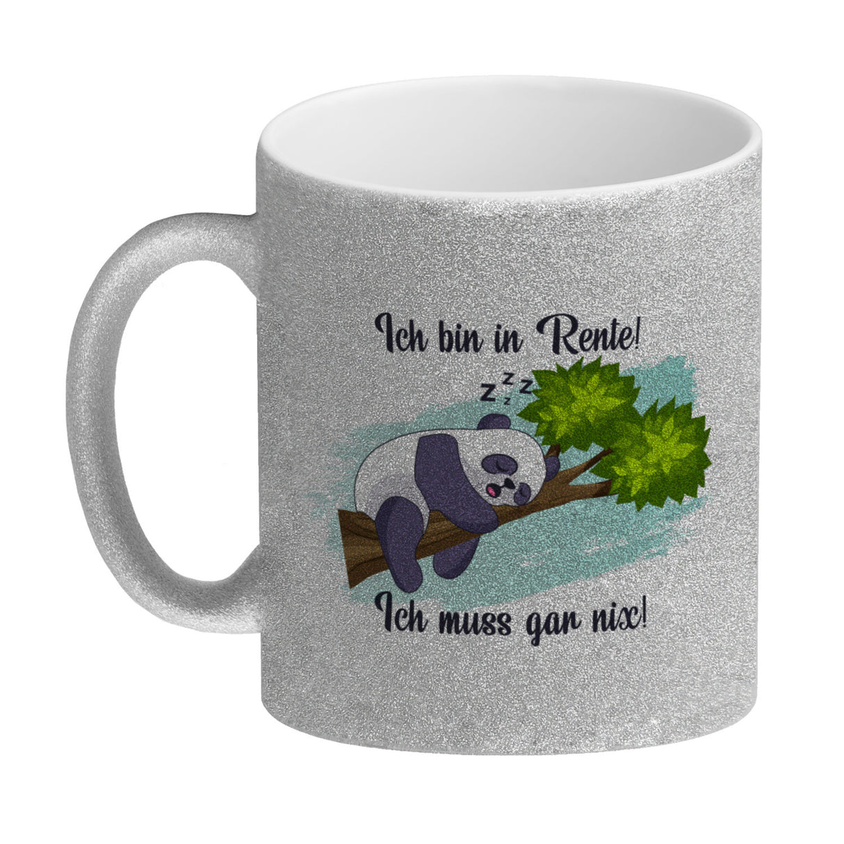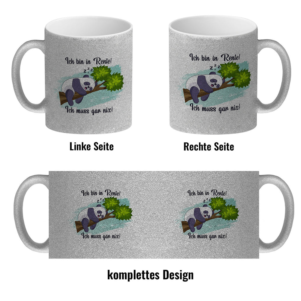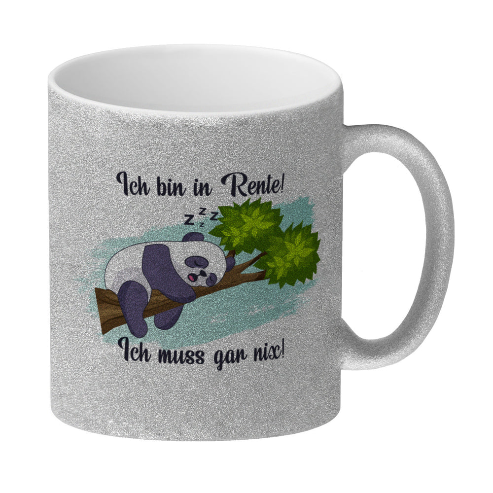 - 1x Panda Kaffeebecher mit Spruch Ich bin in Rente Ich muss gar nix in der gewählten Ausführung