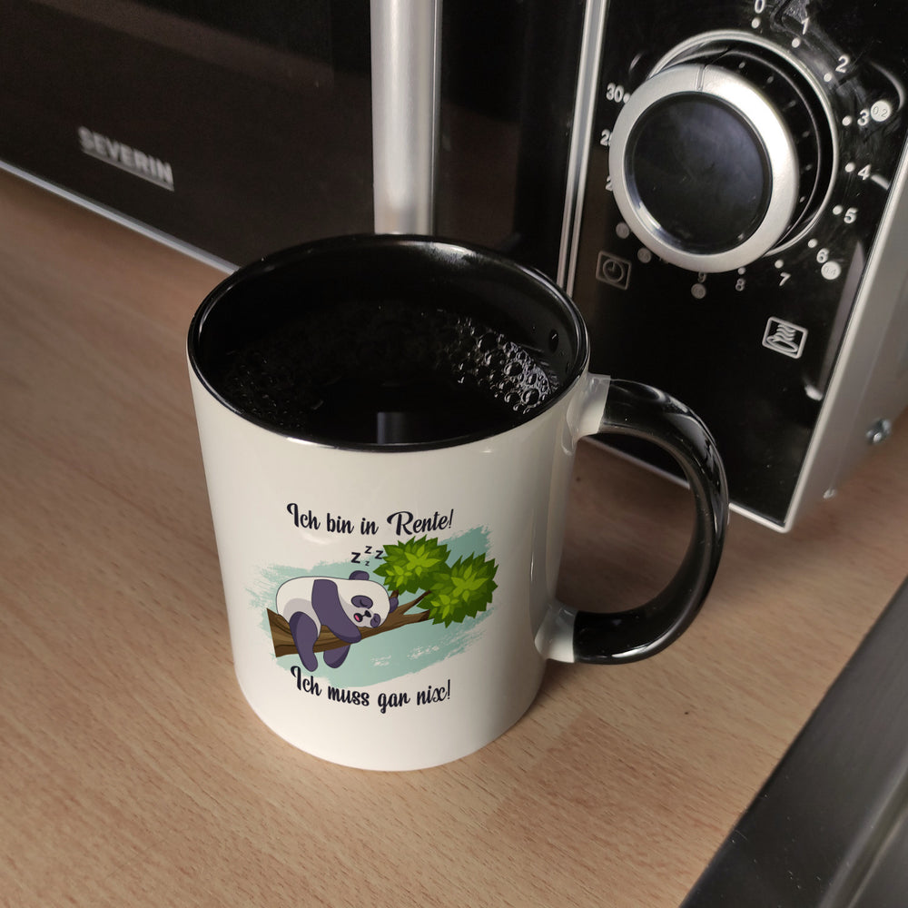 Panda Kaffeebecher mit Spruch Ich bin in Rente Ich muss gar nix