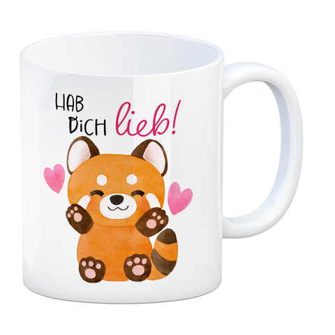 Roter Panda Kaffeebecher mit Spruch Hab dich lieb