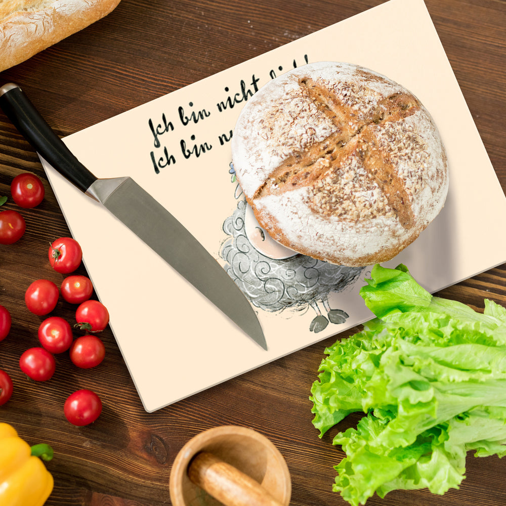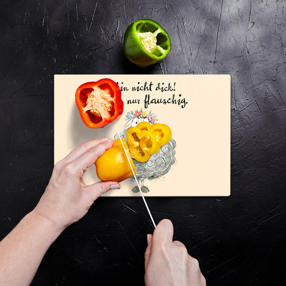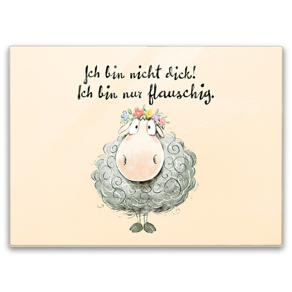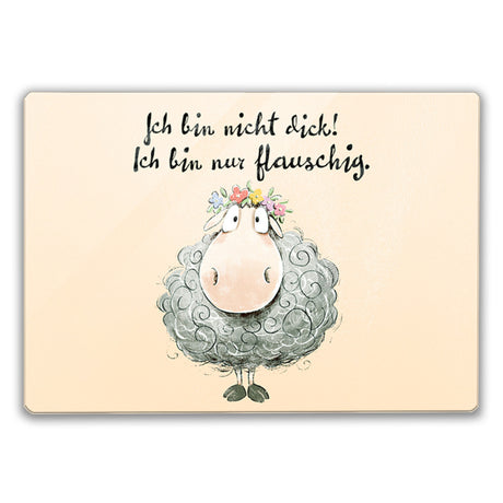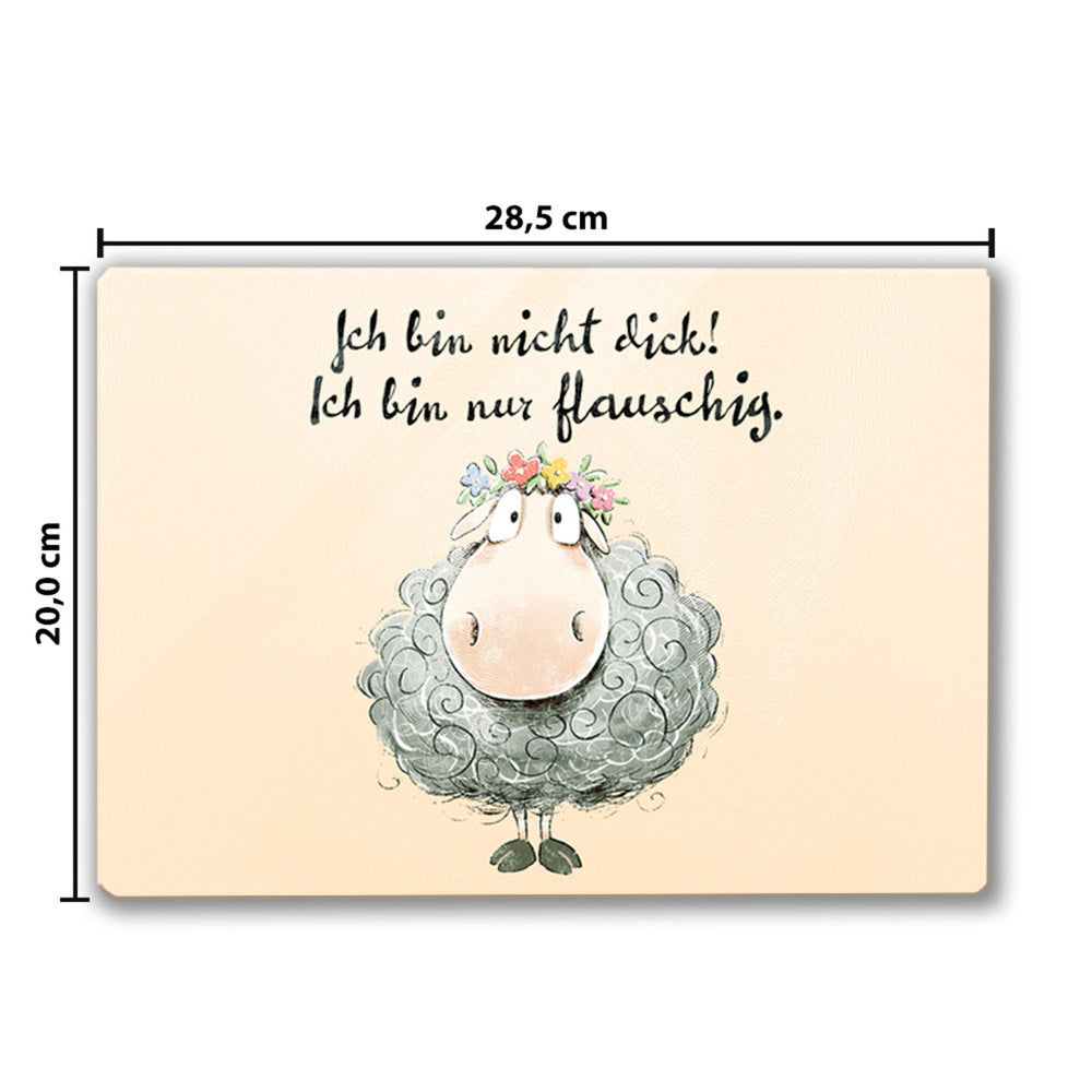 Schaf Schneidebrett aus Glas Glas mit Spruch Nicht dick sondern flauschig