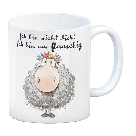 Schaf Kaffeebecher mit Spruch Nicht dick sondern flauschig