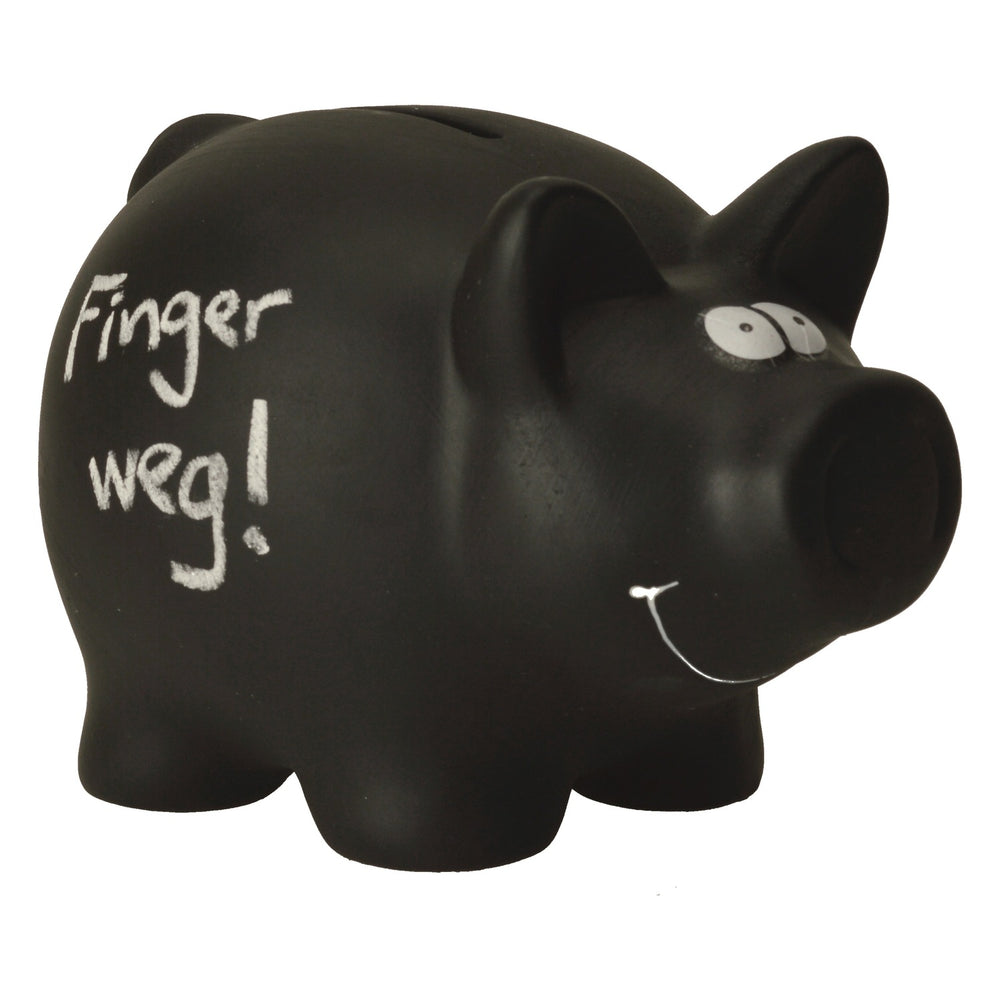 Spardose mit lustigem Schweinchen Motiv und Spruch - Sparschwein