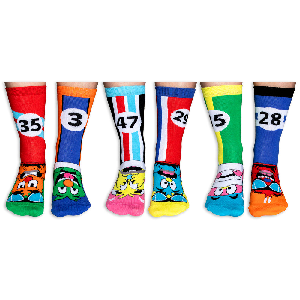 - Lieferumfang: 1x 6er Set The Zoomers Rennwagen Oddsocks Socken.