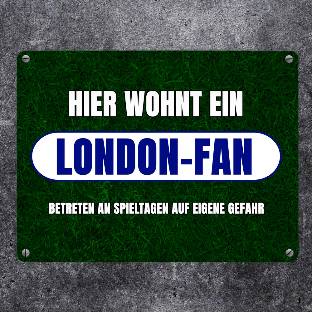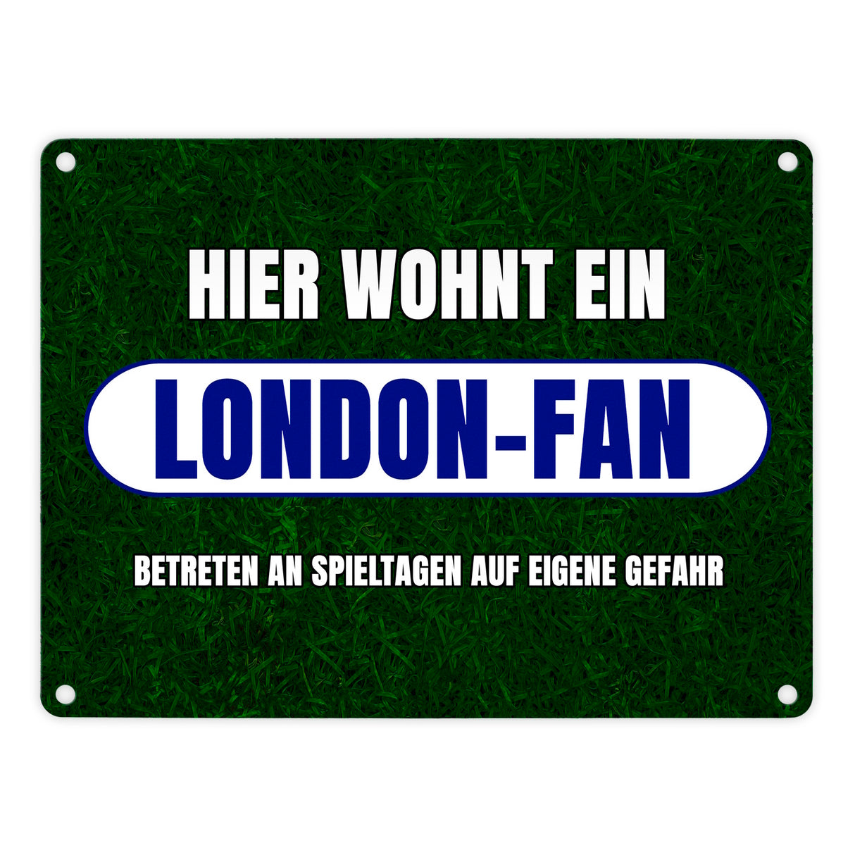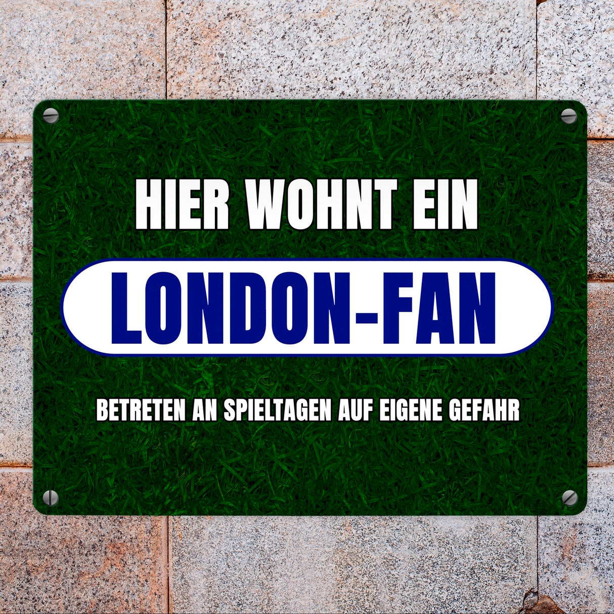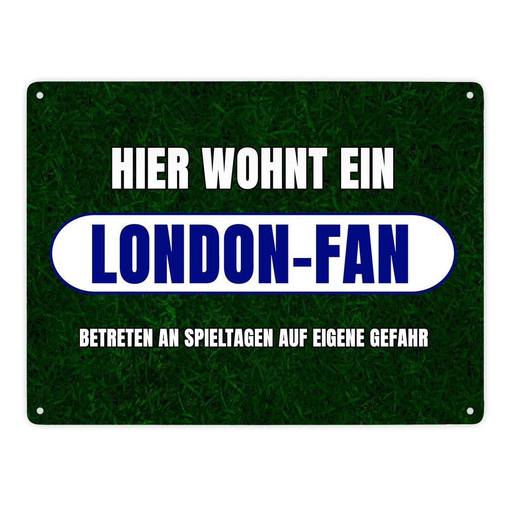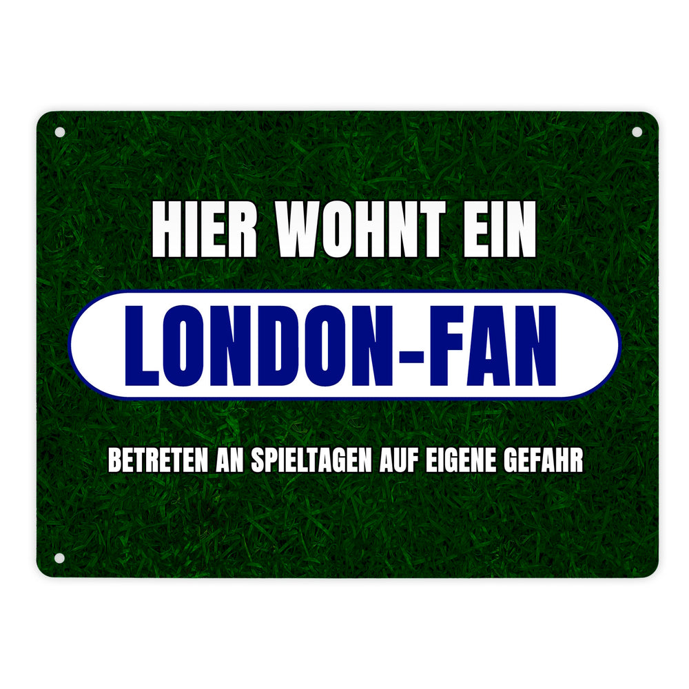 - 1x Hier wohnt ein London-Fan Metallschild in 15x20 cm mit Rasenmotiv in der gewählten Größe