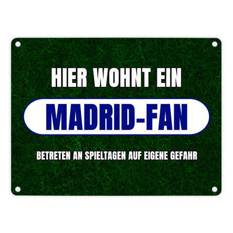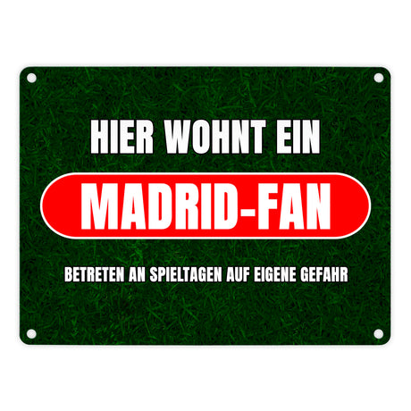 Hier wohnt ein Madrid-Fan Metallschild in 15x20 cm mit Rasenmotiv