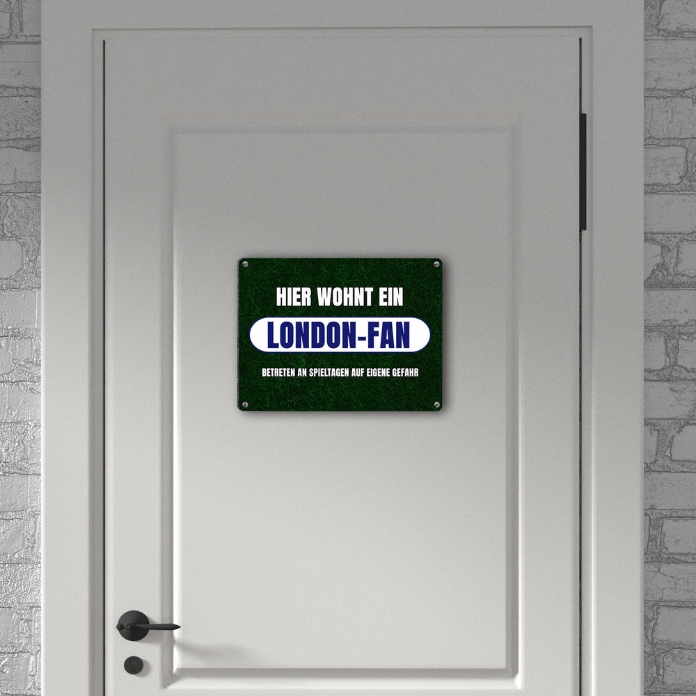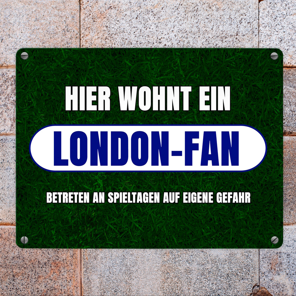 Hier wohnt ein London-Fan Metallschild in 15x20 cm mit Rasenmotiv