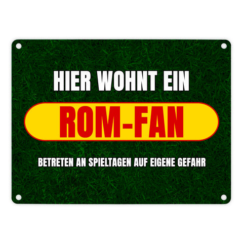 Hier wohnt ein Rom-Fan Metallschild in 15x20 cm mit Rasenmotiv