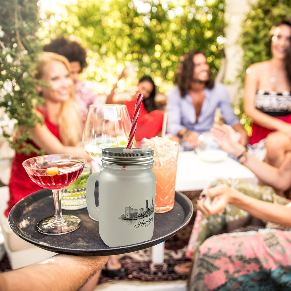 Skyline Hamburg Stadtsilhouette Trinkglas mit Bambusdeckel