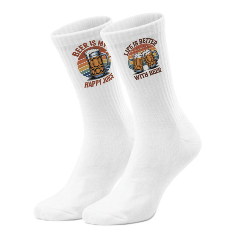 • Diese epicsocks bringen gute Laune an Ihre Füße! Mit einem stilvollen Sonnenuntergang als Hintergrund und lustigen Bier-Illustrationen sind sie ein echter Hingucker. Die eine Socke zeigt zwei fröhliche Bierkrüge vor einer leuchtenden Sonne, die andere einen einzelgängerischen Bierkrug im Retro-Stil. Perfekt für alle, die Farbe und Freude in ihren Alltag bringen möchten!
