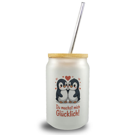 Kawaii Pinguine - Du machst mich glücklich Trinkglas mit Bambusdeckel