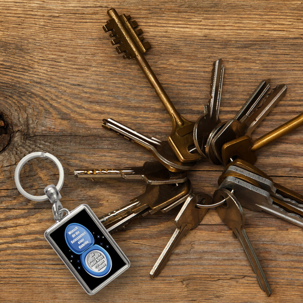 - 1x Klobrille Schlüsselanhänger mit Spruch: Gelassenheit einer Klobrille wünschen in der gewählten Ausführung