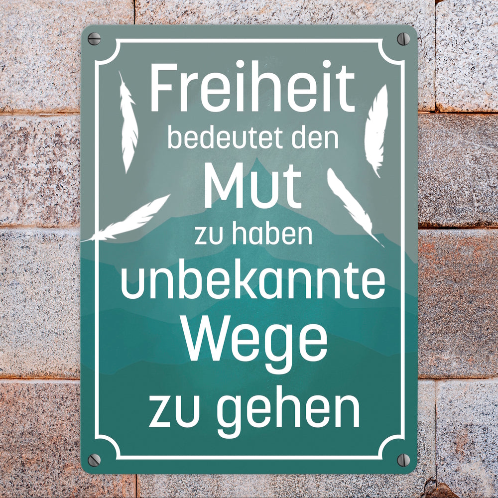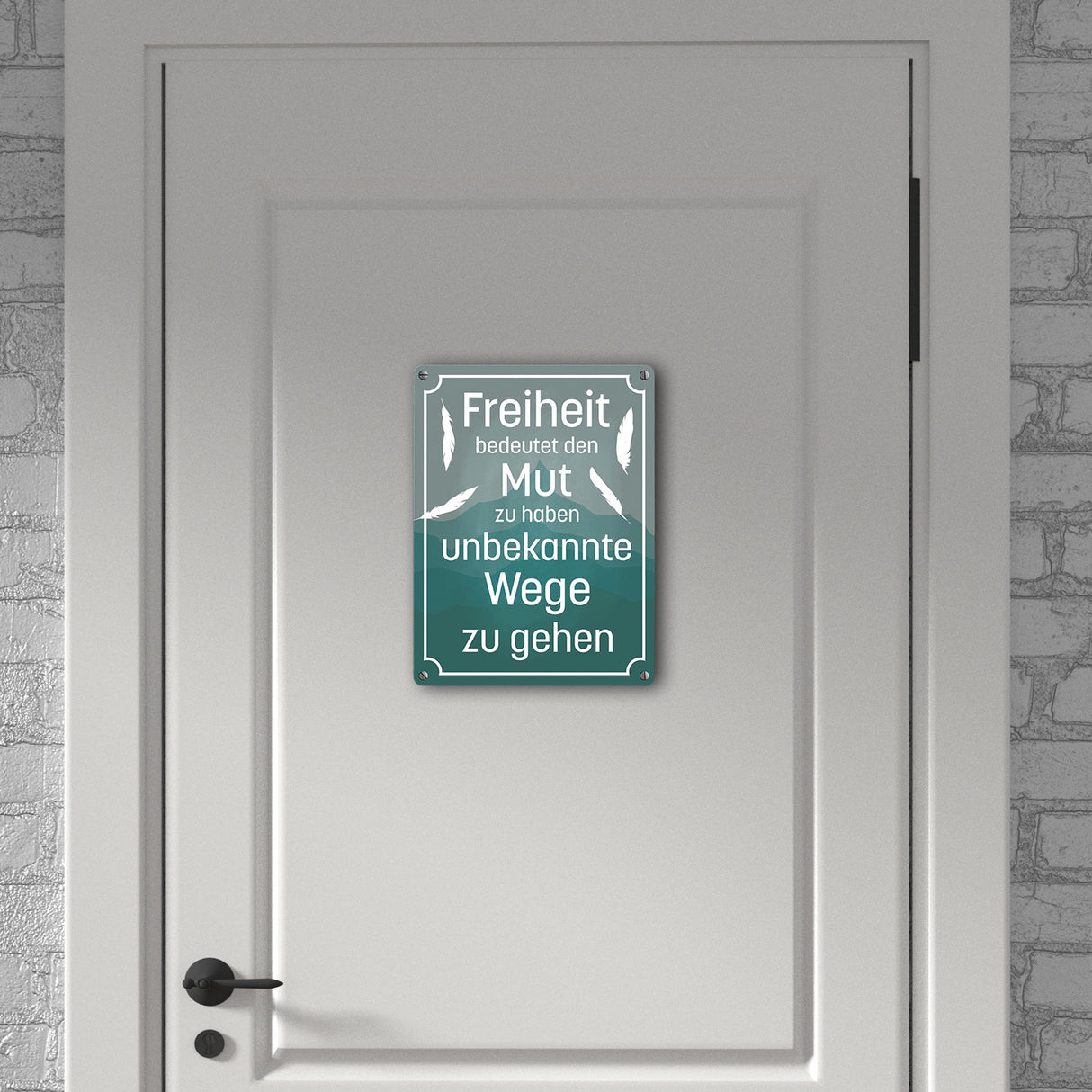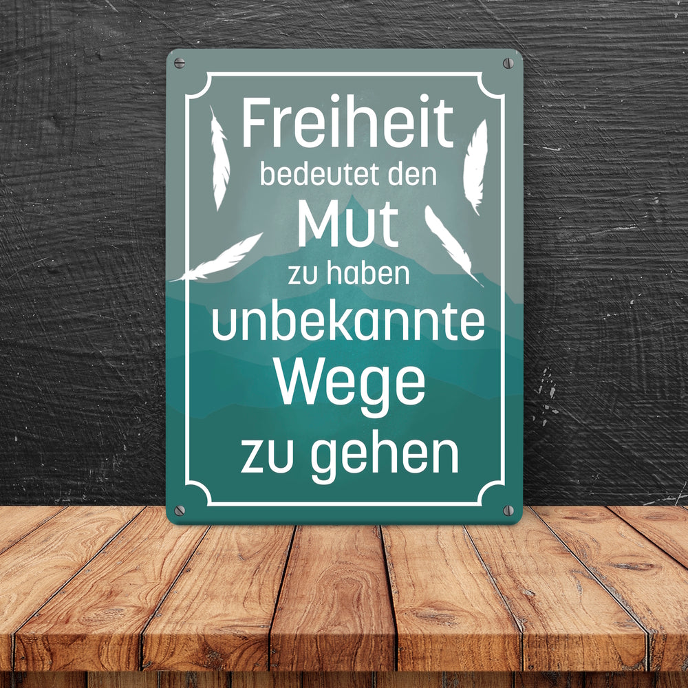 - 1x Metallschild mit schönem Spruch über die Freiheit für das Wohnzimmer in der gewählten Größe