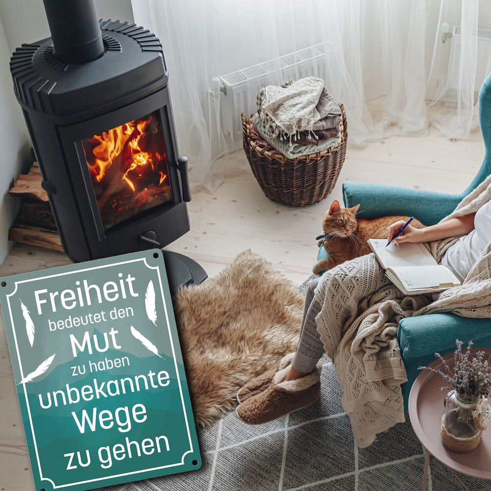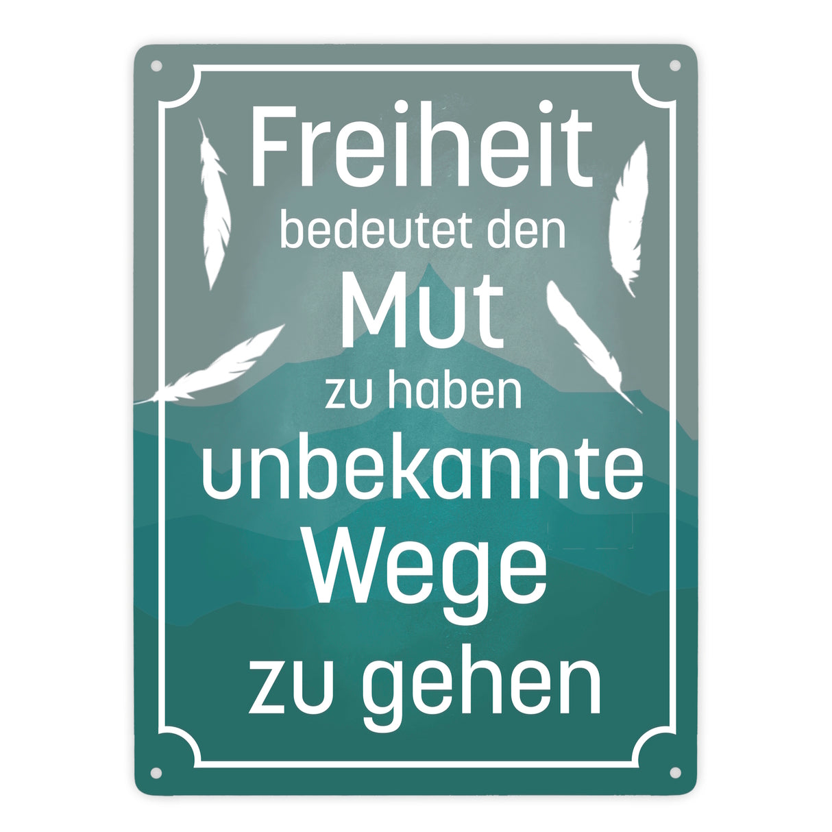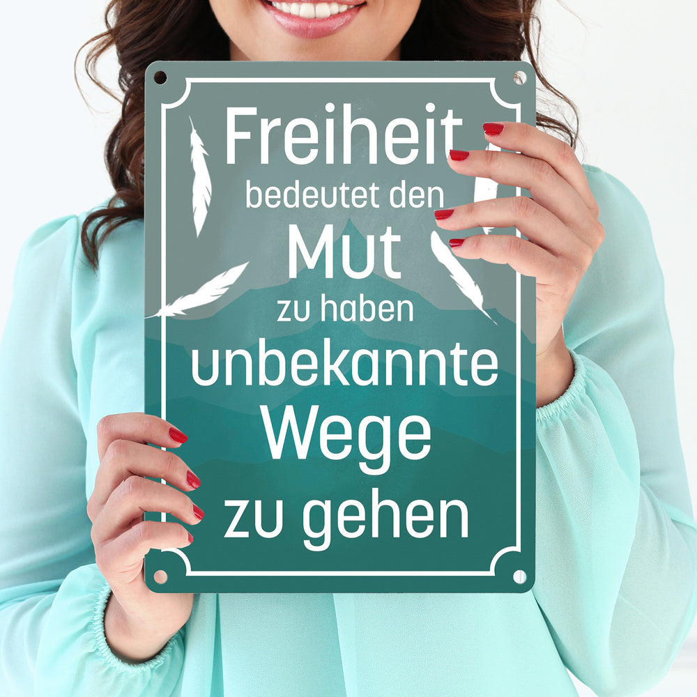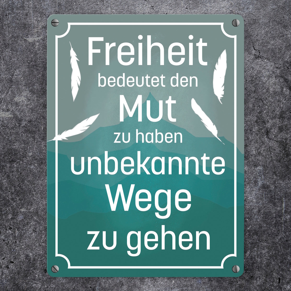 - 1x Metallschild mit schönem Spruch über die Freiheit für das Wohnzimmer in der gewählten Größe