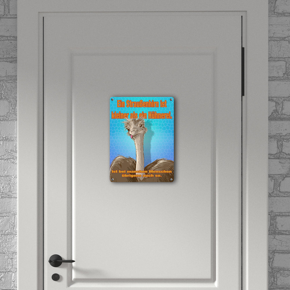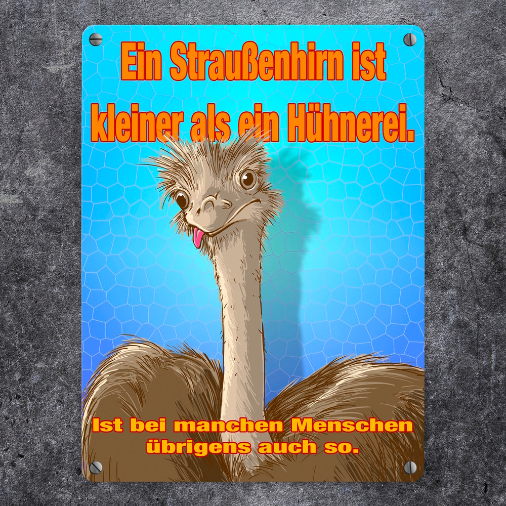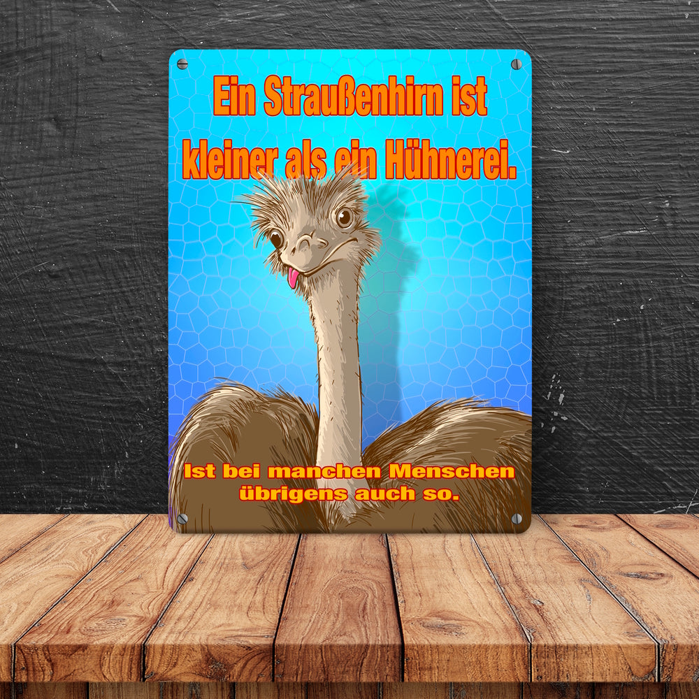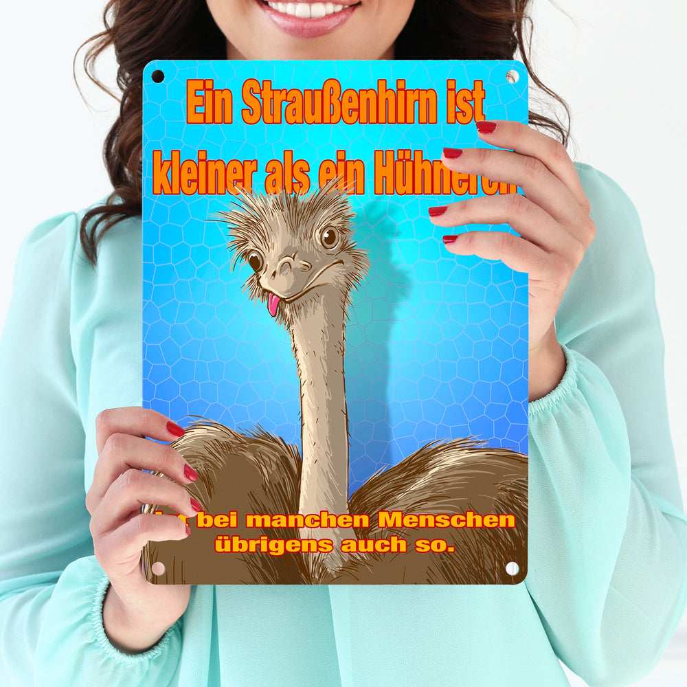 Metallschild Spruch - Ein Straußenhirn ist kleiner als ein Hühnerei