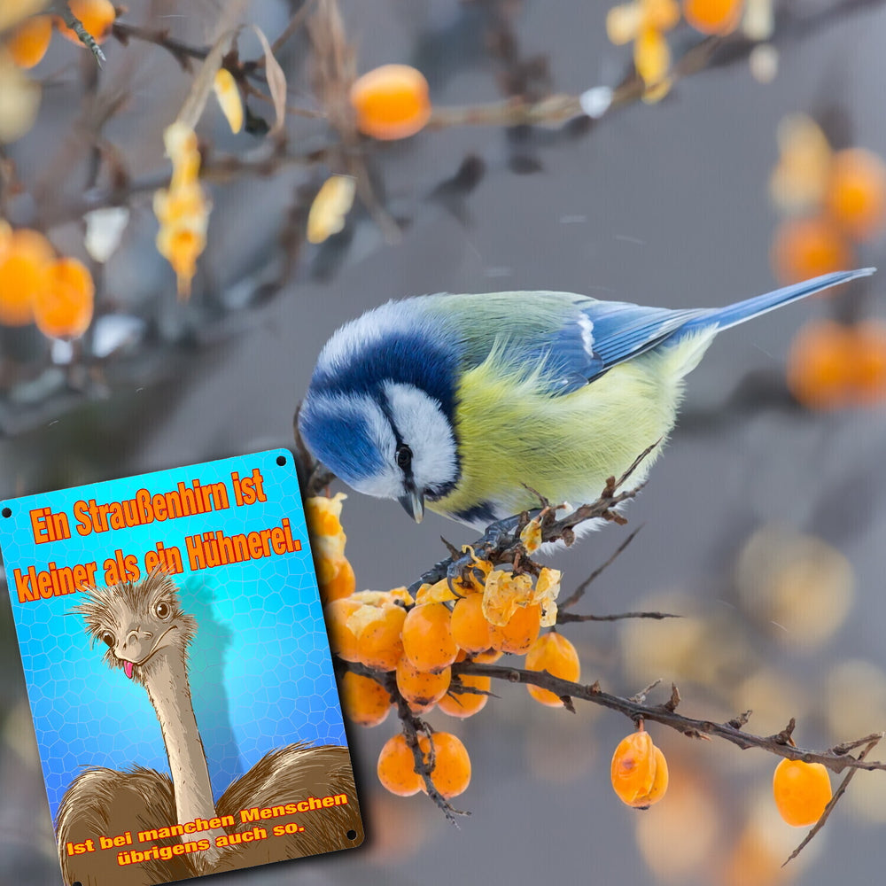 Metallschild Spruch - Ein Straußenhirn ist kleiner als ein Hühnerei - 15x20 cm ist auf Lager und wird versandt, sobald es wieder verfügbar ist