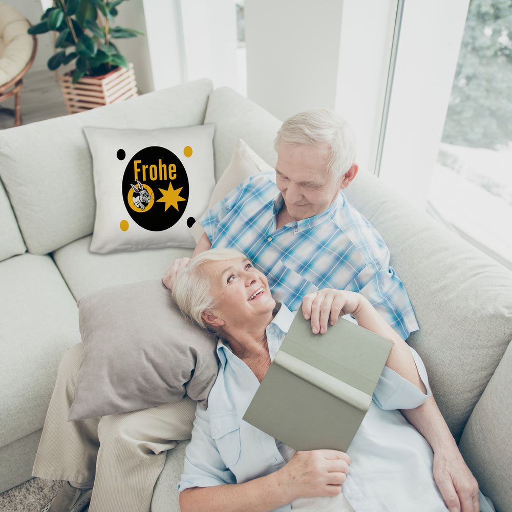 Osterhase Kissen mit Spruch: Frohe Ostern