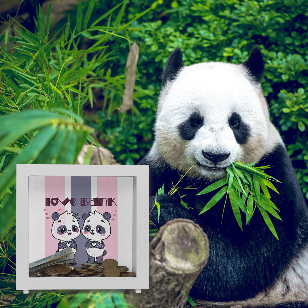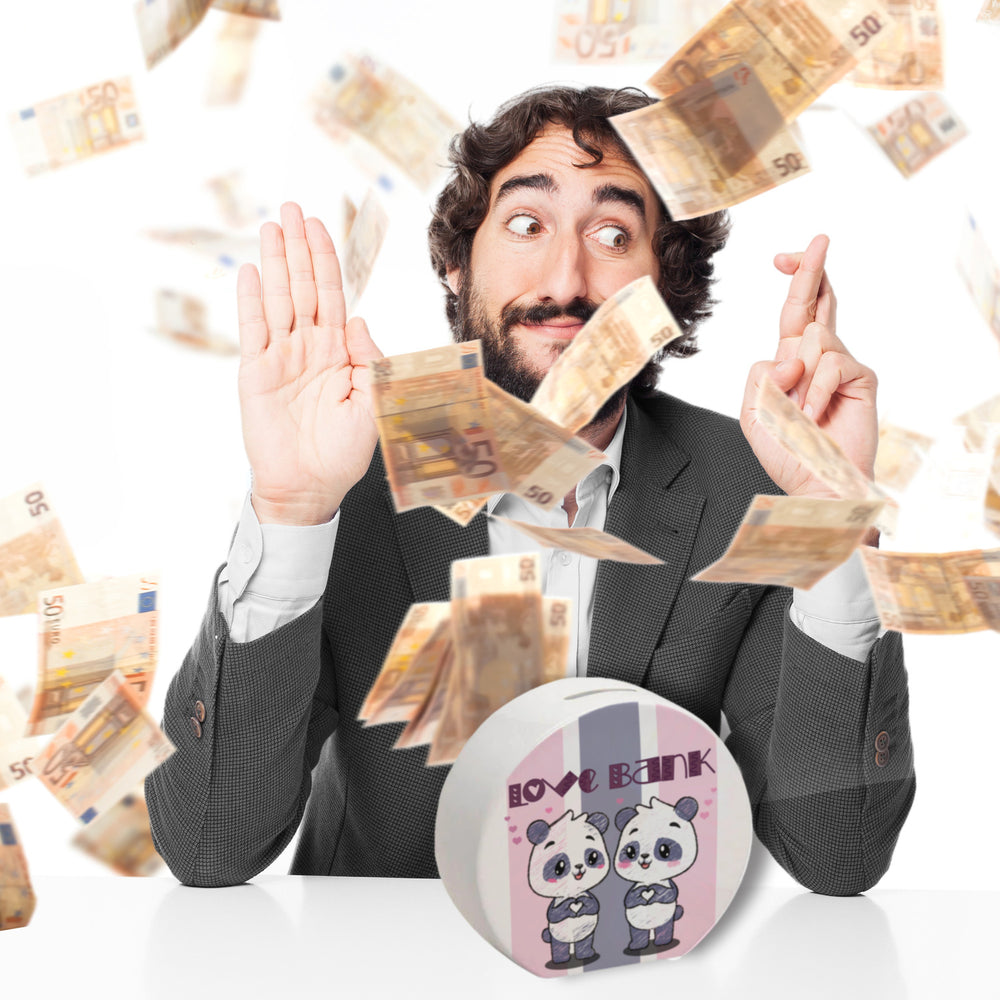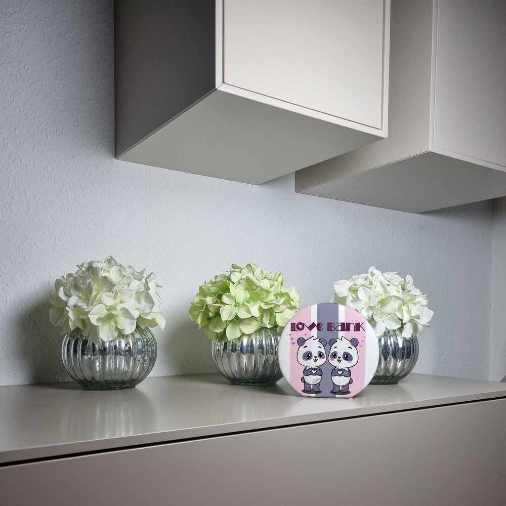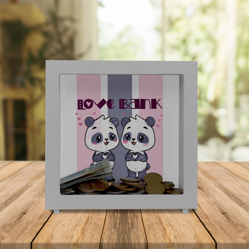 - 1x Panda Spardose mit Spruch Love Bank in der gewählten Ausführung