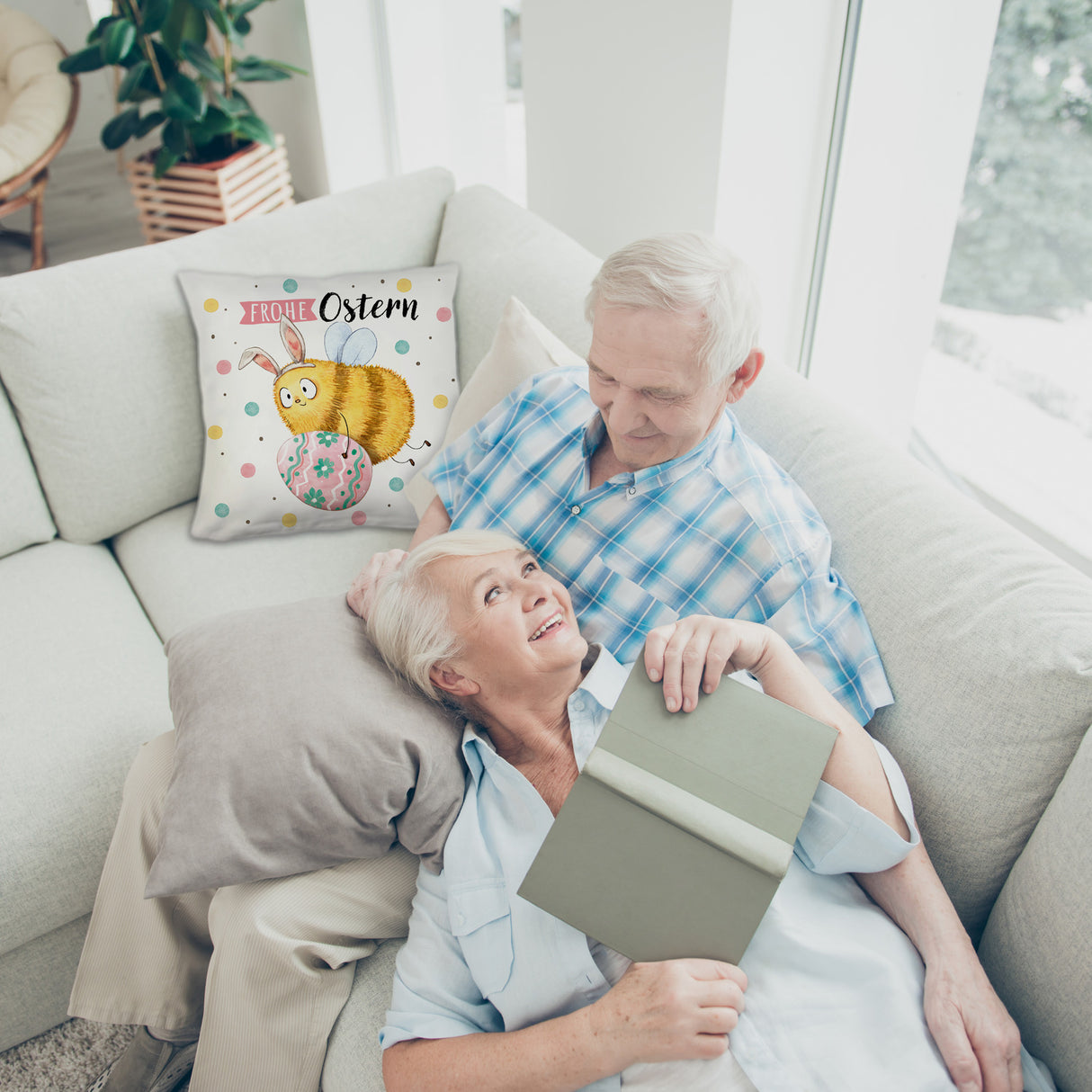 Pummel Biene Kissen mit Spruch Frohe Ostern - Standard ist auf Lager und wird versandt, sobald es wieder verfügbar ist