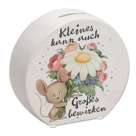 Maus Spardose mit Spruch Kleines kann auch Großes bewirken