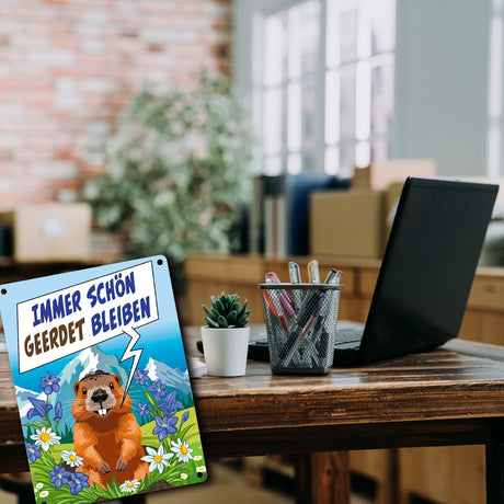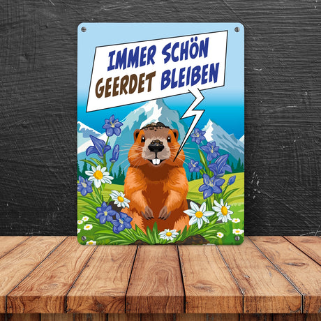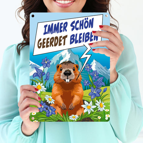 €11,95Grundpreis /Nicht verfügbar Murmeltier Metallschild in 15x20 cm mit Spruch: Immer schön geerdet bleiben