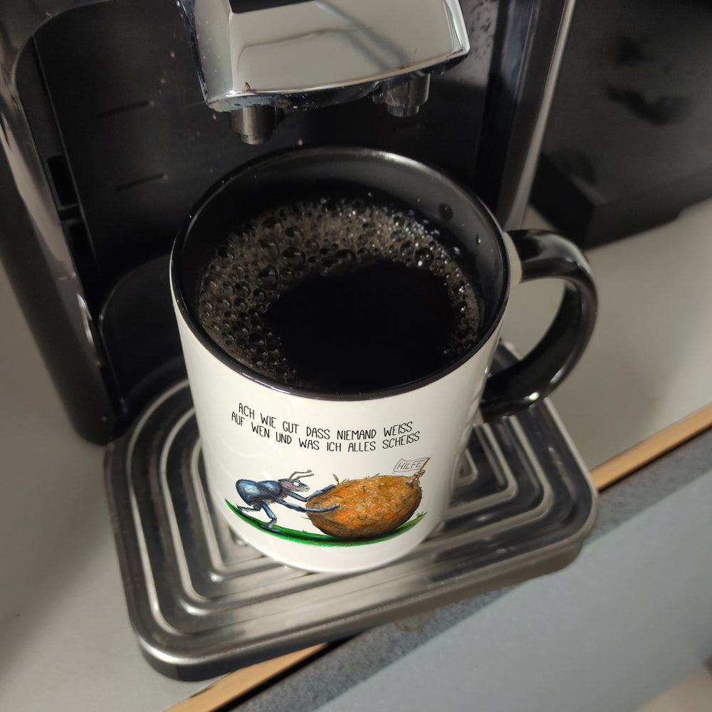 Ach wie gut, dass niemand weiß, auf wen und was ich alles scheiß Kaffeebecher