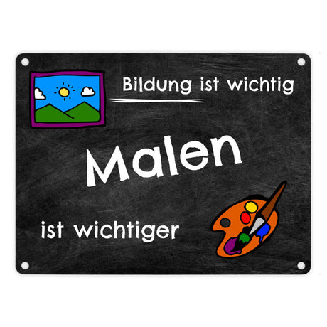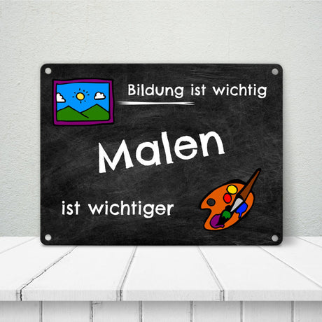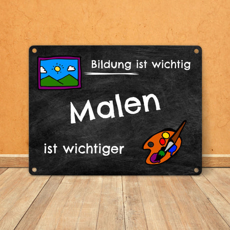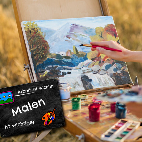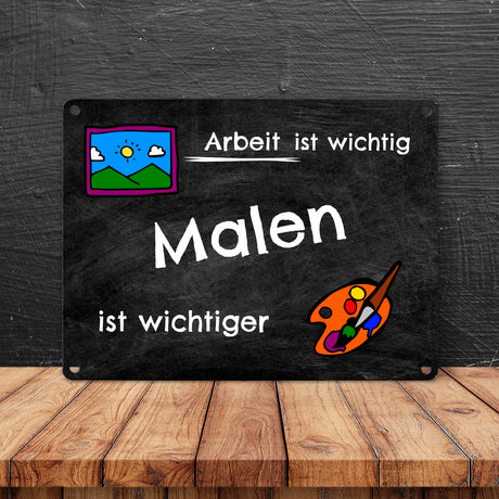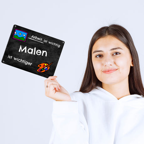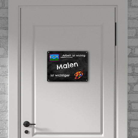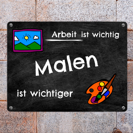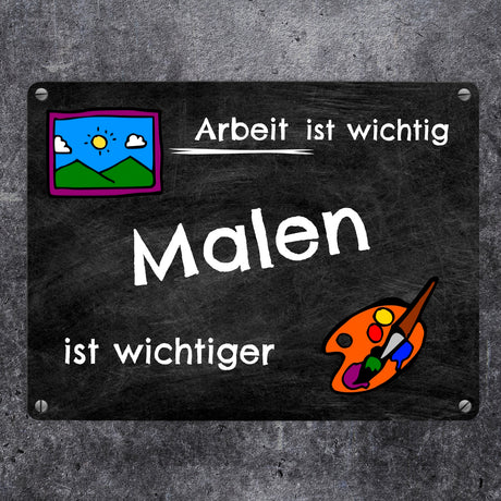 Malen Metallschild - Arbeit ist wichtig Malen ist wichtiger