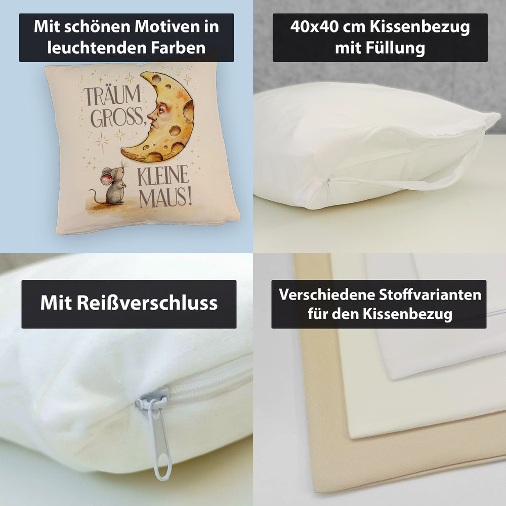 • 1x Maus und Käse-Mond Träum groß Kissen in der gewählten Ausführung