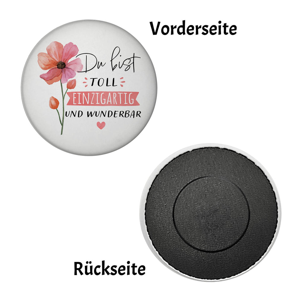 Blume Magnet rund mit Spruch Du bist toll einzigartig und wunderbar