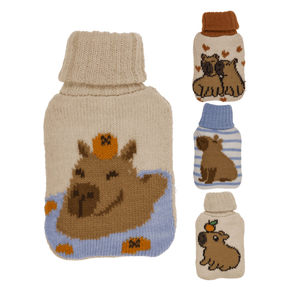 Capybara Handwärmer mit Stricküberzug in zufälliger Variante