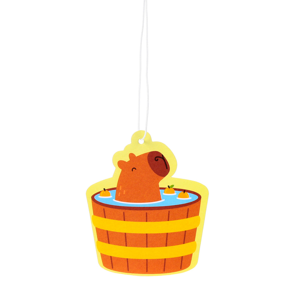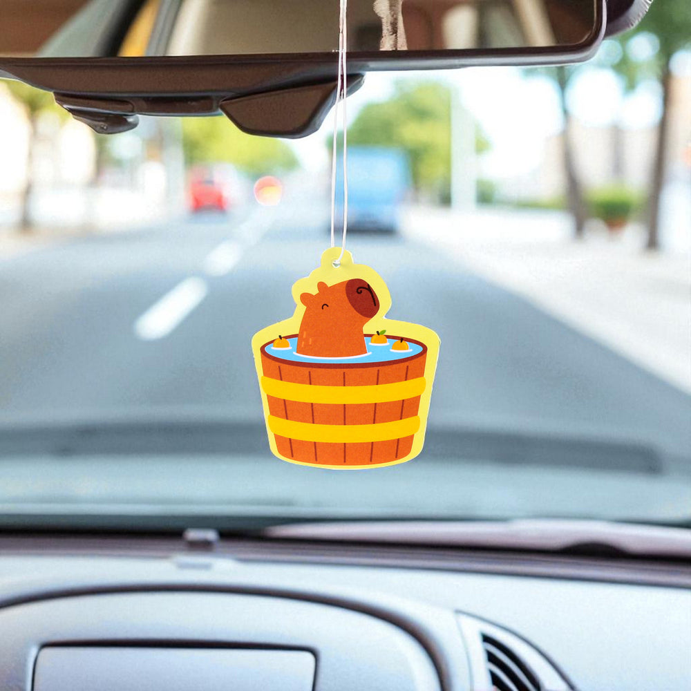 - Dieser lustige Auto Lufterfrischer ist nicht nur ein Duftwunder, sondern auch ein echter Hingucker! Das Design zeigt ein entspannendes Capybara, das in einem Holzeimer mit Orangen planscht. Der braune Wasserschwein-Charme, kombiniert mit dem erfrischenden Geruch von Zitrusfrüchten, macht jede Autofahrt zu einer kleinen Safari!