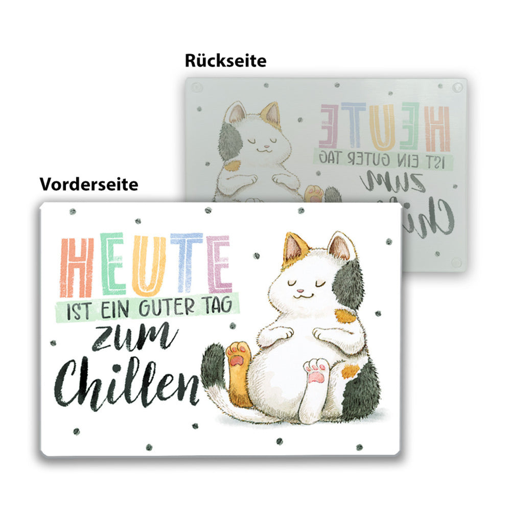- 1x Glückskatze Schneidebrett aus Glas mit Spruch Heute ist ein guter Tag zum Chillen in der gewählten Größe