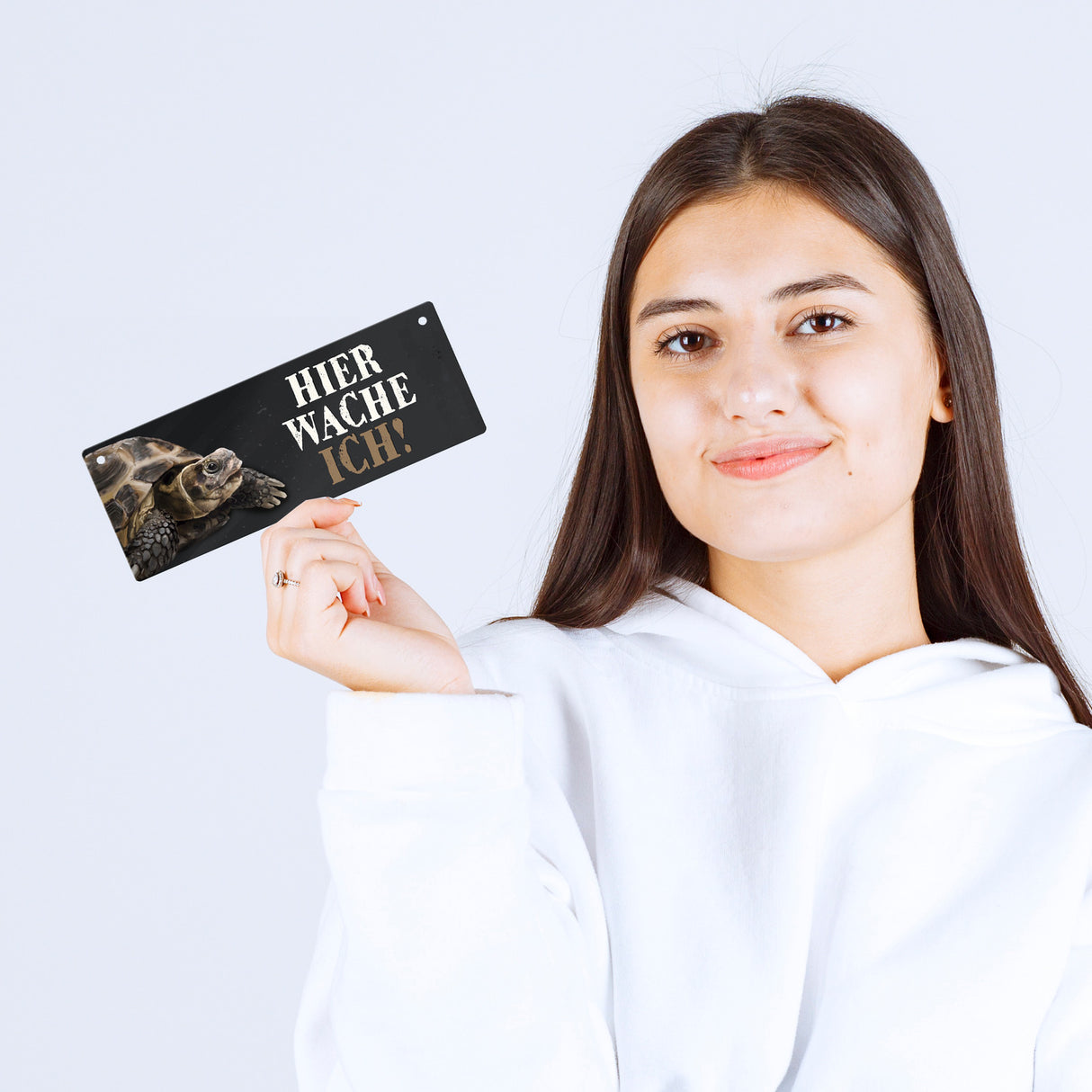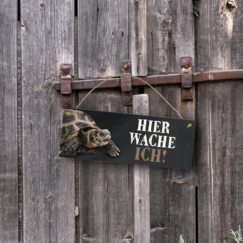 - Lieferumfang: 1x Metallschild mit Schildkröte Motiv und Spruch: Hier wache ich!